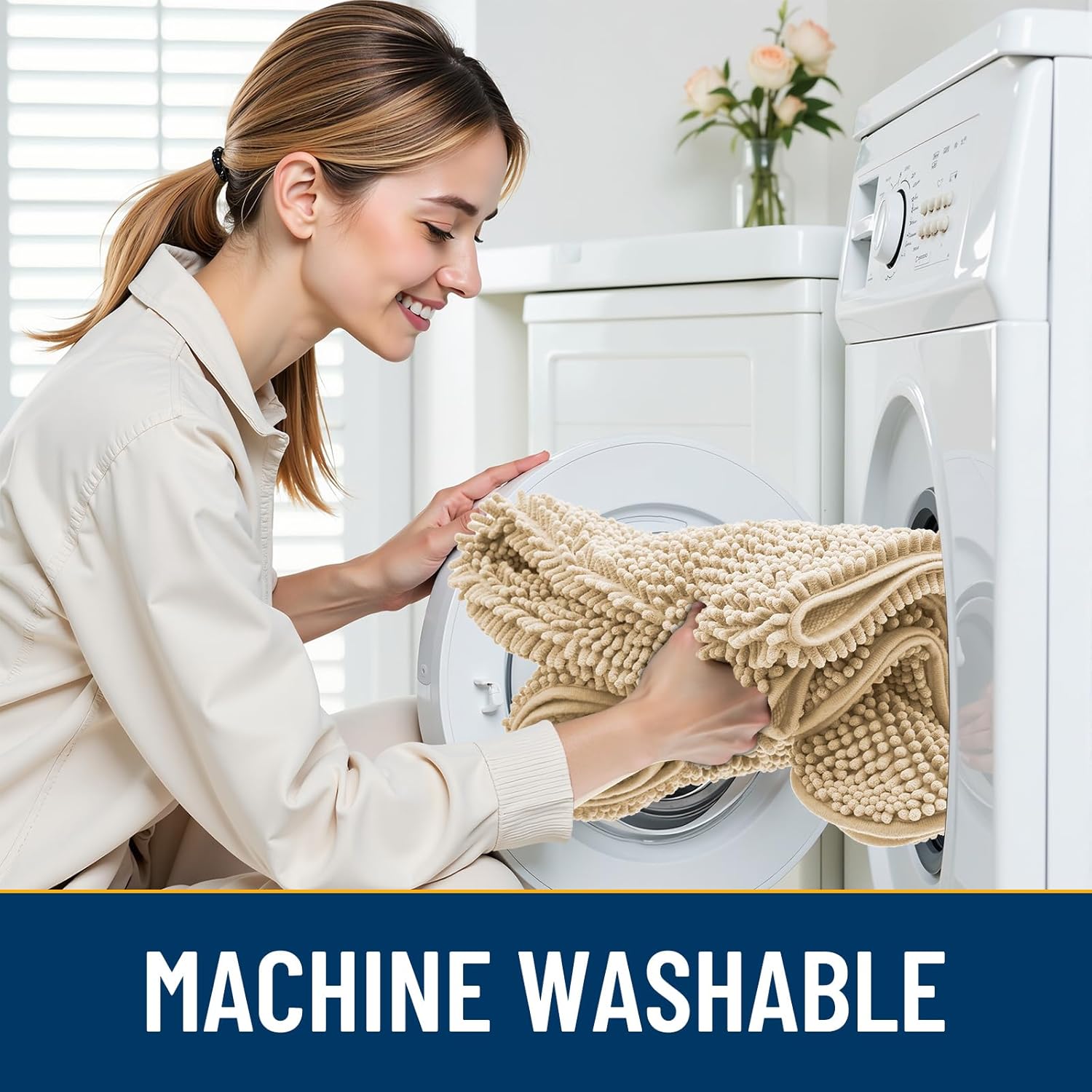 Smiry Dog Door Mat for Muddy Paws 36x24, Absorbs Moisture and Dirt Doormat, Non-Slip Washable Quick Dry Chenille Front Door Mat Indoor Entrance, Entryway Carpet for Inside Floor, Beige
