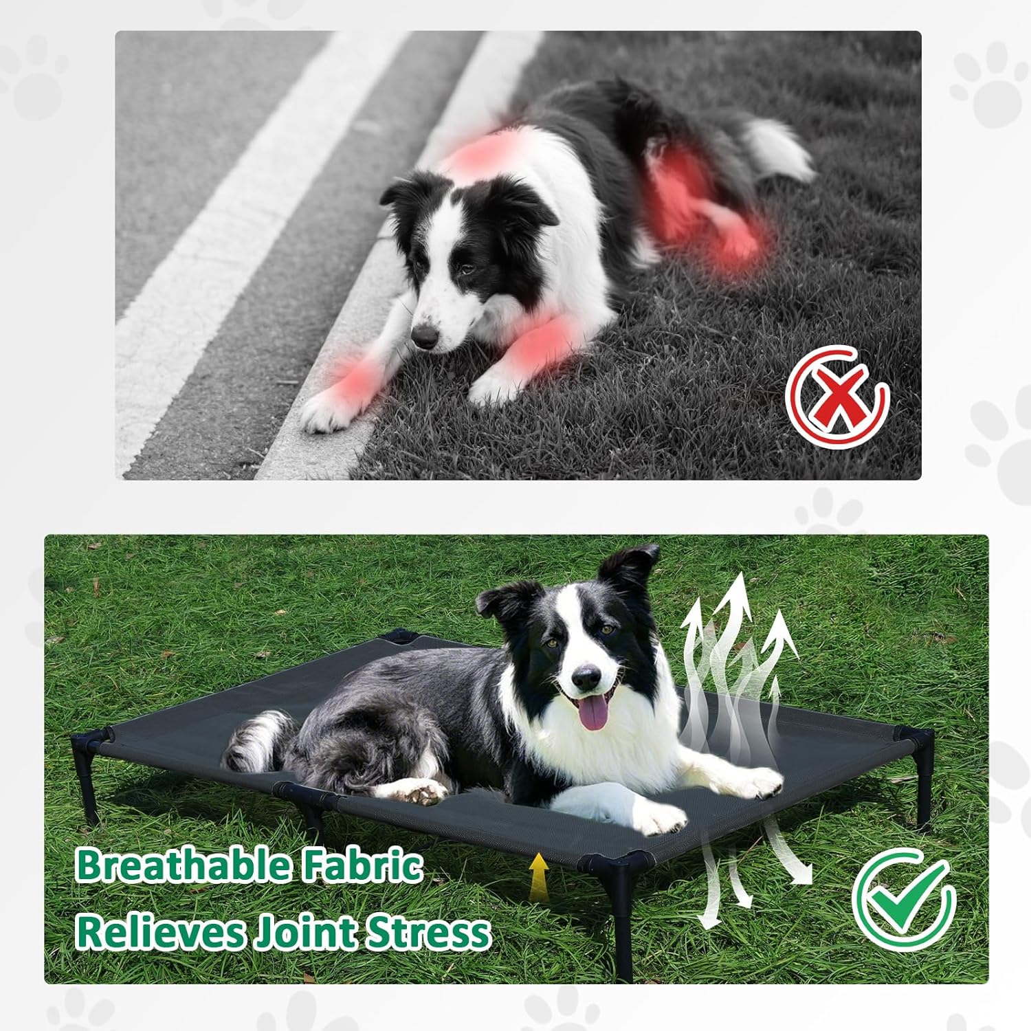 - BREATHABLE TESLIN MESH: This outdoor dog bed comes with breathable and durable Teslin mesh, provides airflow and firm support to relieve joint pressure. Our dog cot bed is suitable for dogs of all life stages, from puppy to the senior