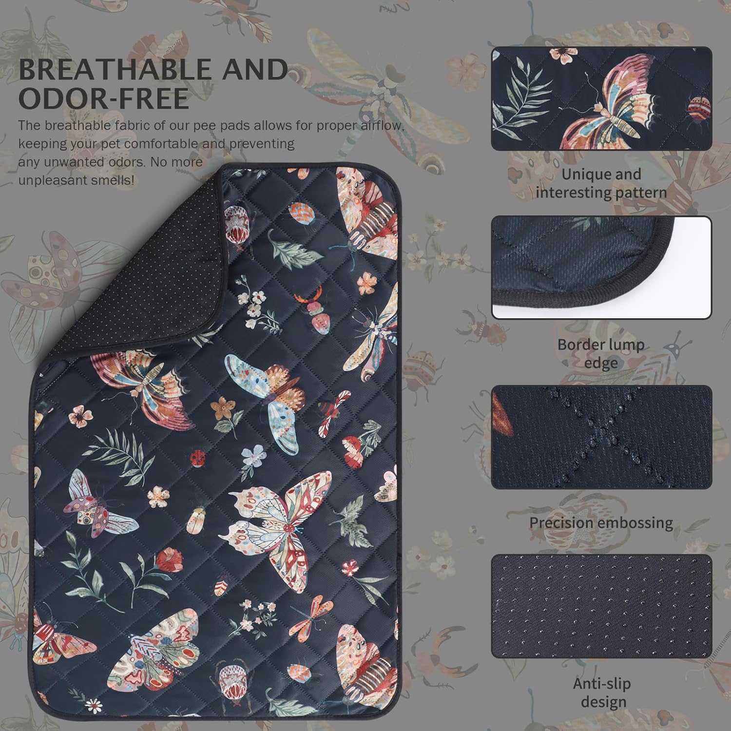 IEUUMLER Washable Pee Pads for Dogs, 1 Pack Insect Pattern Reusable Waterproof Puppy Potty Pads, Non-Slip Absorbent Pet Training Pads for Playpen Crate Bed EU014
