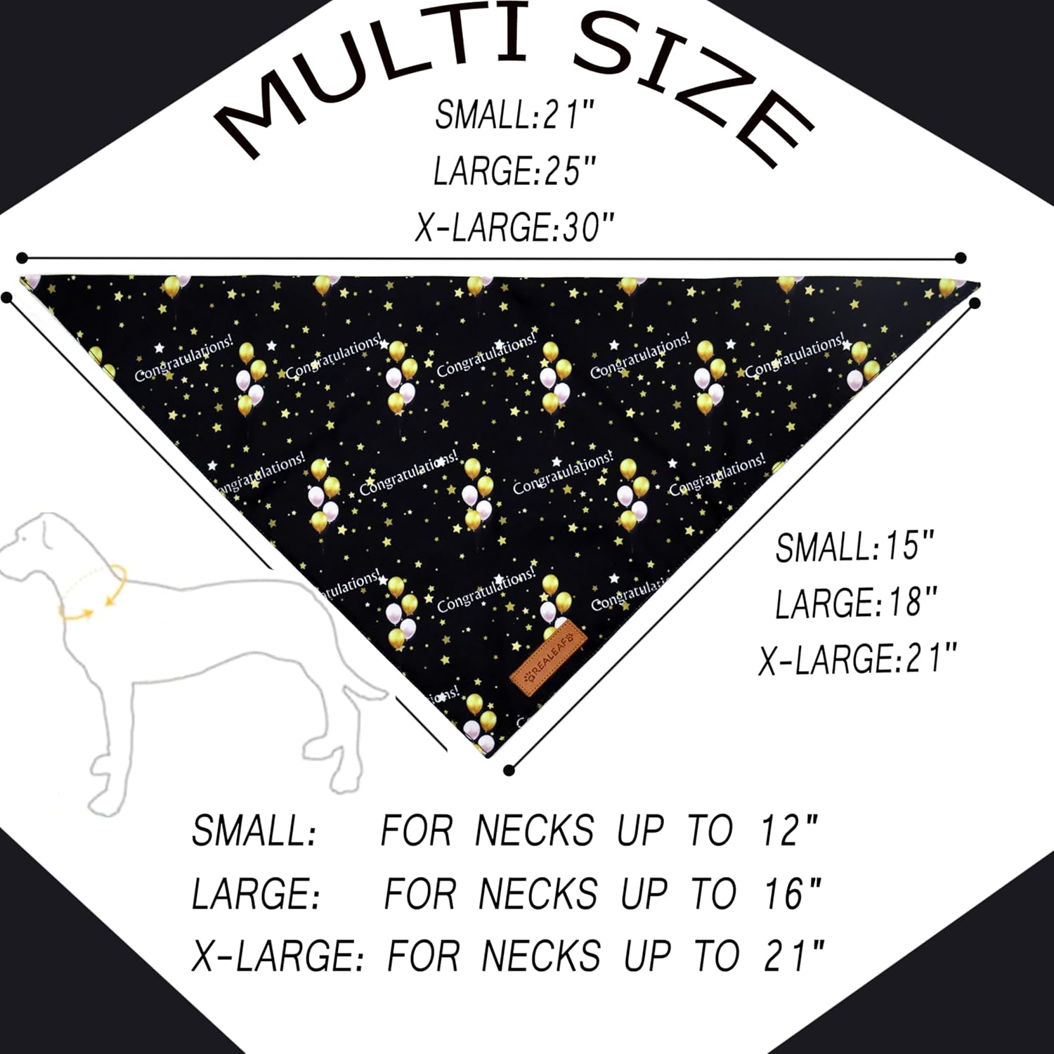 Realeaf Graduation Dog Bandanas 2 Pack, Reversible Pet Scarf for Boy and Girl, Premium Durable Fabric, Holiday Bandana for Small Medium Large and XLarge Dogs (Graduation, X-Large)