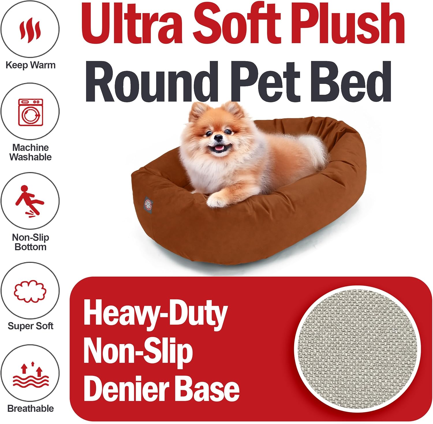 Majestic Pet 24 Inch Suede Calming Dog Bed Washable 24x19x7 (Inch) – Cozy Soft Round Donut Dog Bed with Spine Support for Dogs to Rest Their Head - Pet Bed Small – Rust (2025)