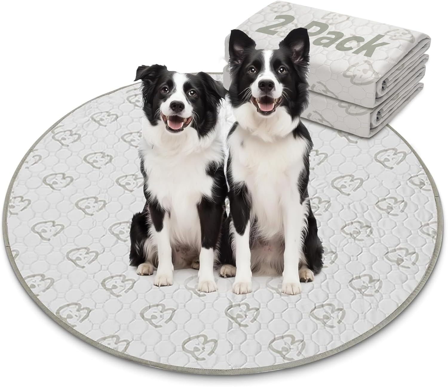 FXW Washable Pee Pads for Dogs, Puppy Pads with Super Absorbent, Specifically Designed for Whelping Box, 47" Round, Khaki, 2 Packs