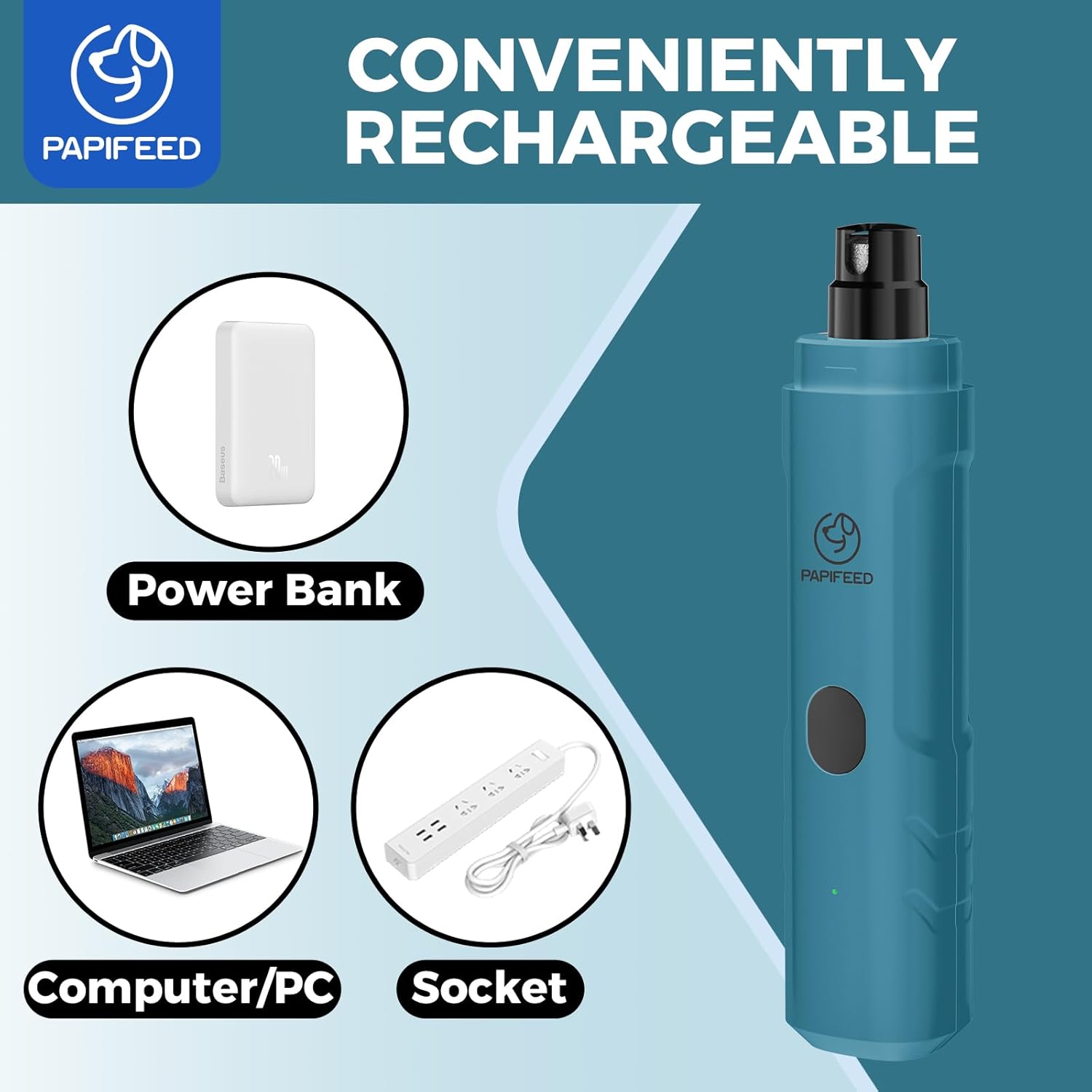 PAPIPAFFEED Dog Nail Grinder Upgraded with 2 LED Lights, 3-Speed Rechargeable & Quiet - Upgraded Electric Pet Nail Trimmer for Small Medium Large Dogs & Cats, Painless Paws Grooming Tool - Blue