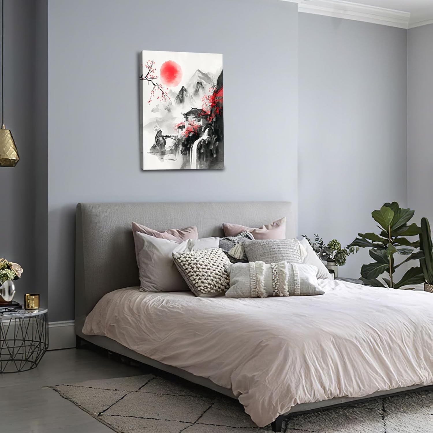 Japanese Wall Art Canvas Asian Nature Wall Decor Prints Framed Painting Mountain Landscape Pictures Gifts Artwork for Bathroom 16"x24"