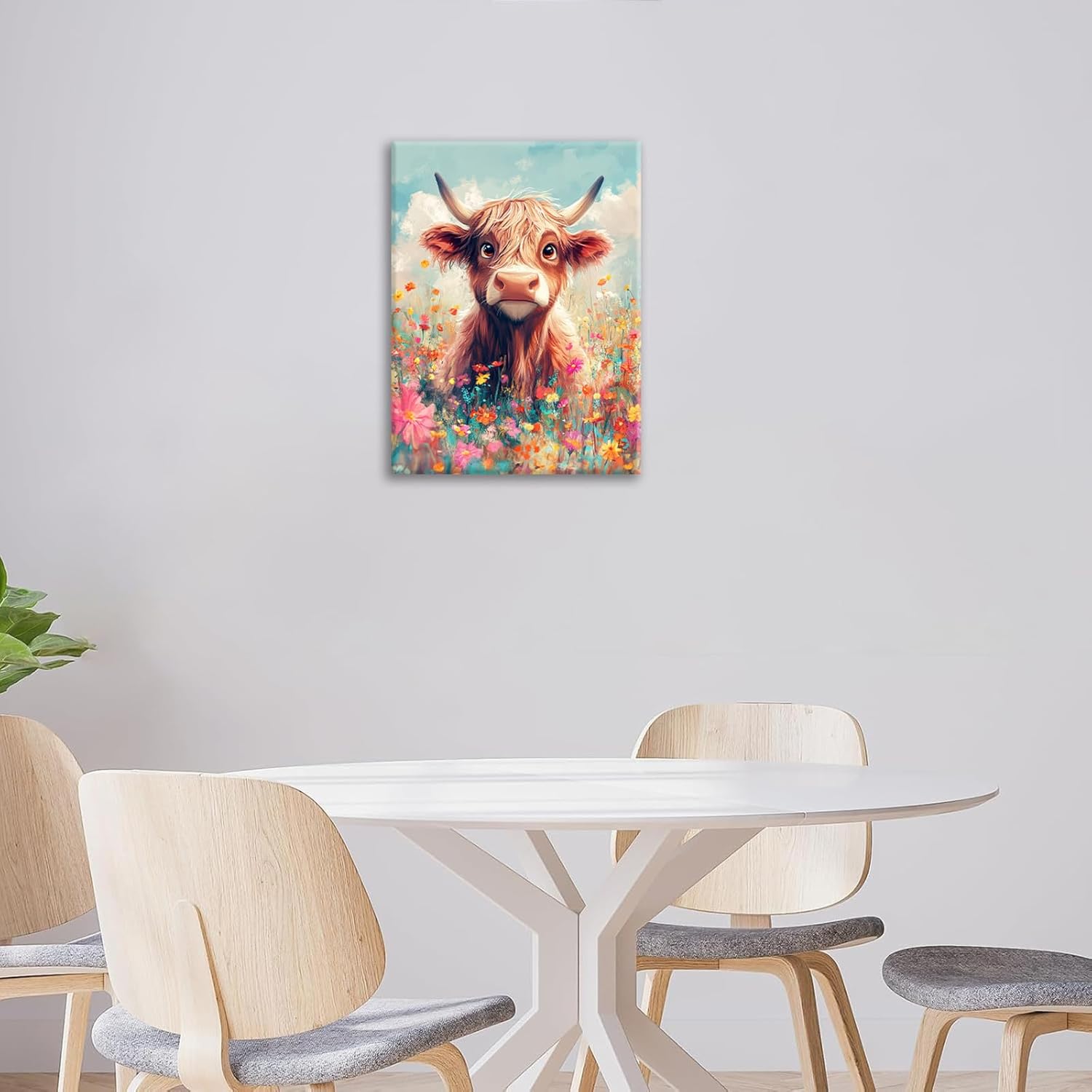 Highland Cow Wall Art Canvas Flower Cattle Wall Decor Prints Framed Painting Animal Pictures Gifts Artwork for Bathroom Living Dining Kitchen 12"x16"