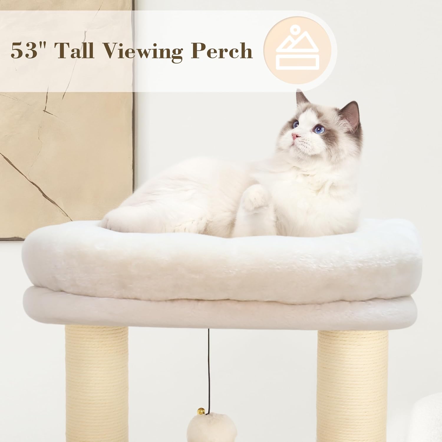 KAMABOKO Modern Cat Tree, 53" Tall Cat Trees for Indoor Cats, Cat Condo Natural Sisal with Scratching Posts, Hand-Woven Tower & Top Perch, Cat-Tree for Kittens Climb Play & Rest