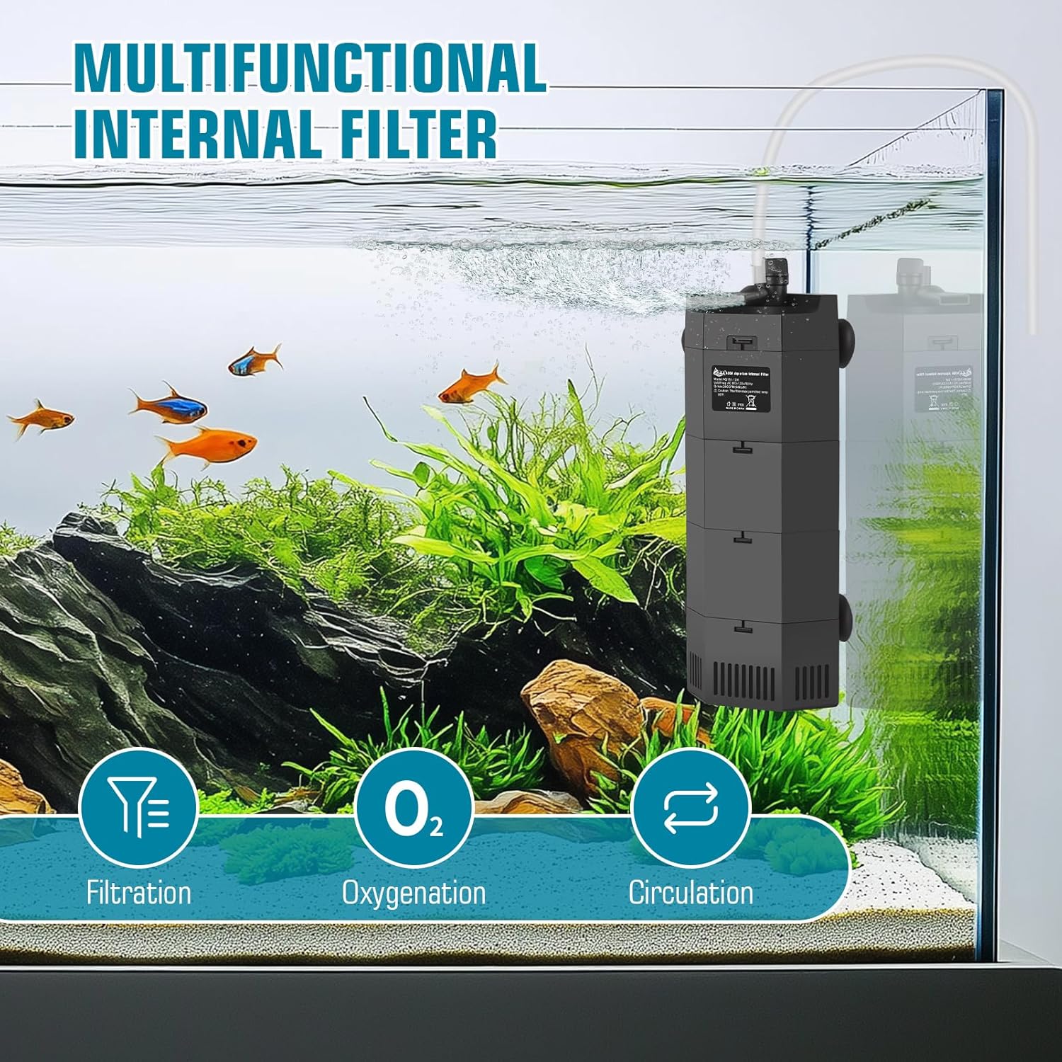 - Powerful Filter with Whisper Operation โ Designed with low-noise technology for whisper-quiet performance, this submersible fish tank filter maintains a peaceful environment in bedrooms, offices, or living rooms without disturbing you or your fish.