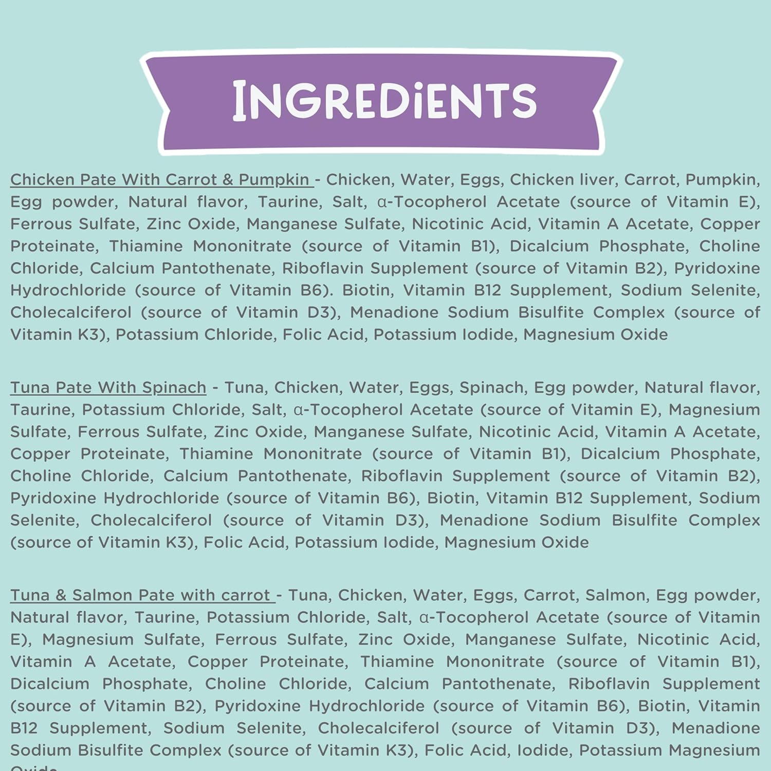 LOVE, NALA - Natural Adult Cat Wet Food - Pate Variety Pack - Tuna, Chicken, Tuna and Salmon - Grain Free, Non-GMO, Fiber Blend, Minerals, Vitamins - 12 Pack 2.1 lbs.