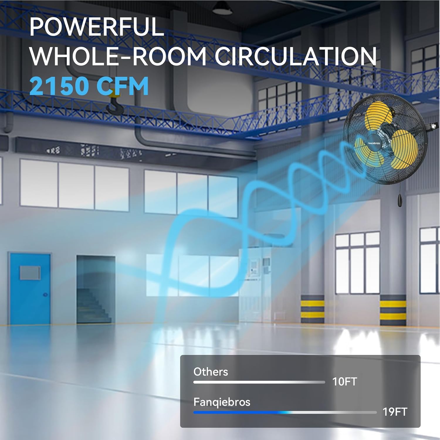 - ๐๐ข๐ ๐ก ๐๐๐ฅ๐จ๐๐ข๐ญ๐ฒ ๐๐ข๐ซ ๐ ๐ฅ๐จ๐ฐ - Equipped with 3 adjustable wind speeds, low (1700CFM), medium (2100CFM) and high (2500 CFM), this wall fan utilizes the raw power of the pure copper motor to provide hurricane-like airflow to meet your garages, shops, covered patios, or anywhere else you need