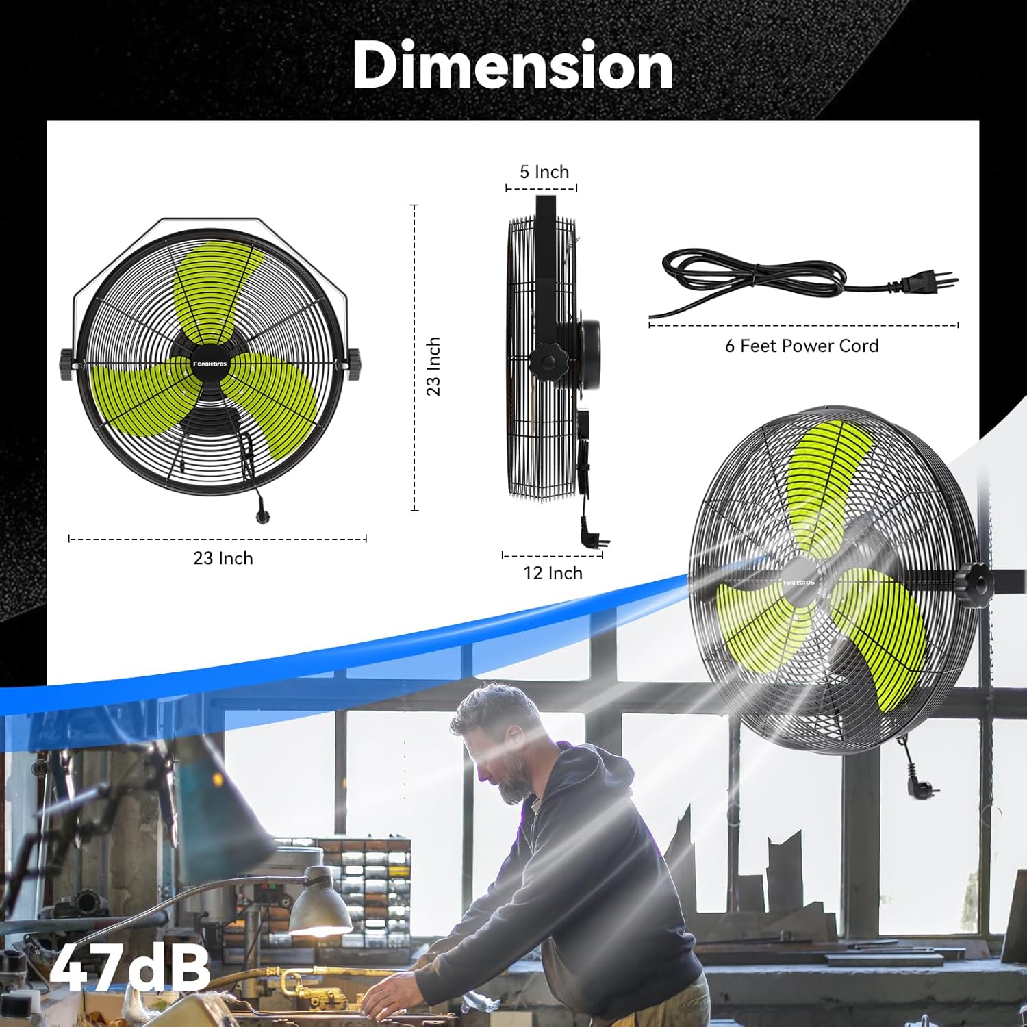 4580 CFM 18 inch High Velocity Wall Mounted Fan, 3-Speed Metal Fan with Sealed Motor, 360 Degree Tliting Heavy Duty Wall Fan for Patio, Barn, Garage, and Gazebo - UL listed