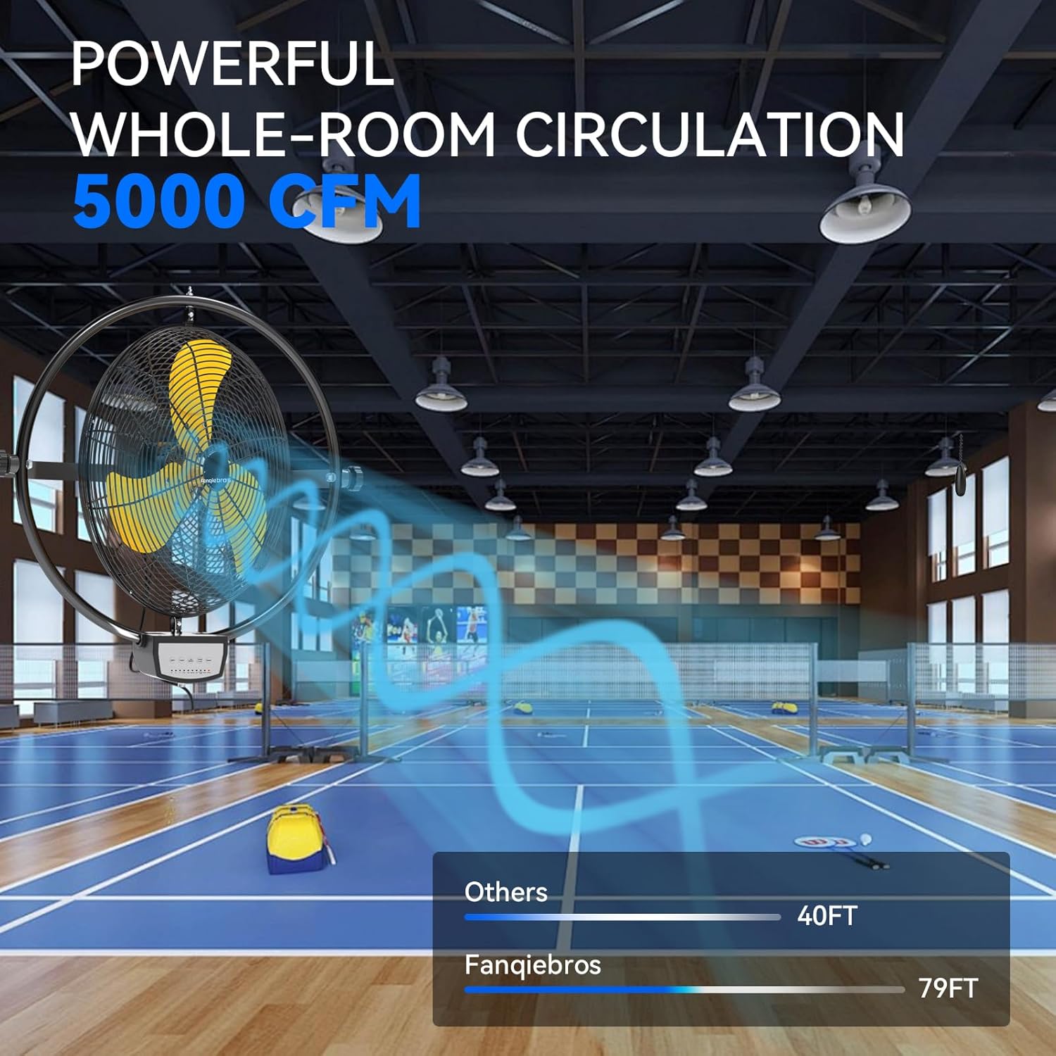 - ๐๐จ๐ฐ-๐๐จ๐ข๐ฌ๐ ๐๐๐ฌ๐ข๐ ๐ง - With optimized motor and vibration reduction technology. When running at a high speed of 5000 CFM, the noise level is only 59 dB, this wall fan is lower than the industry standard, creating a quieter gathering or working environment