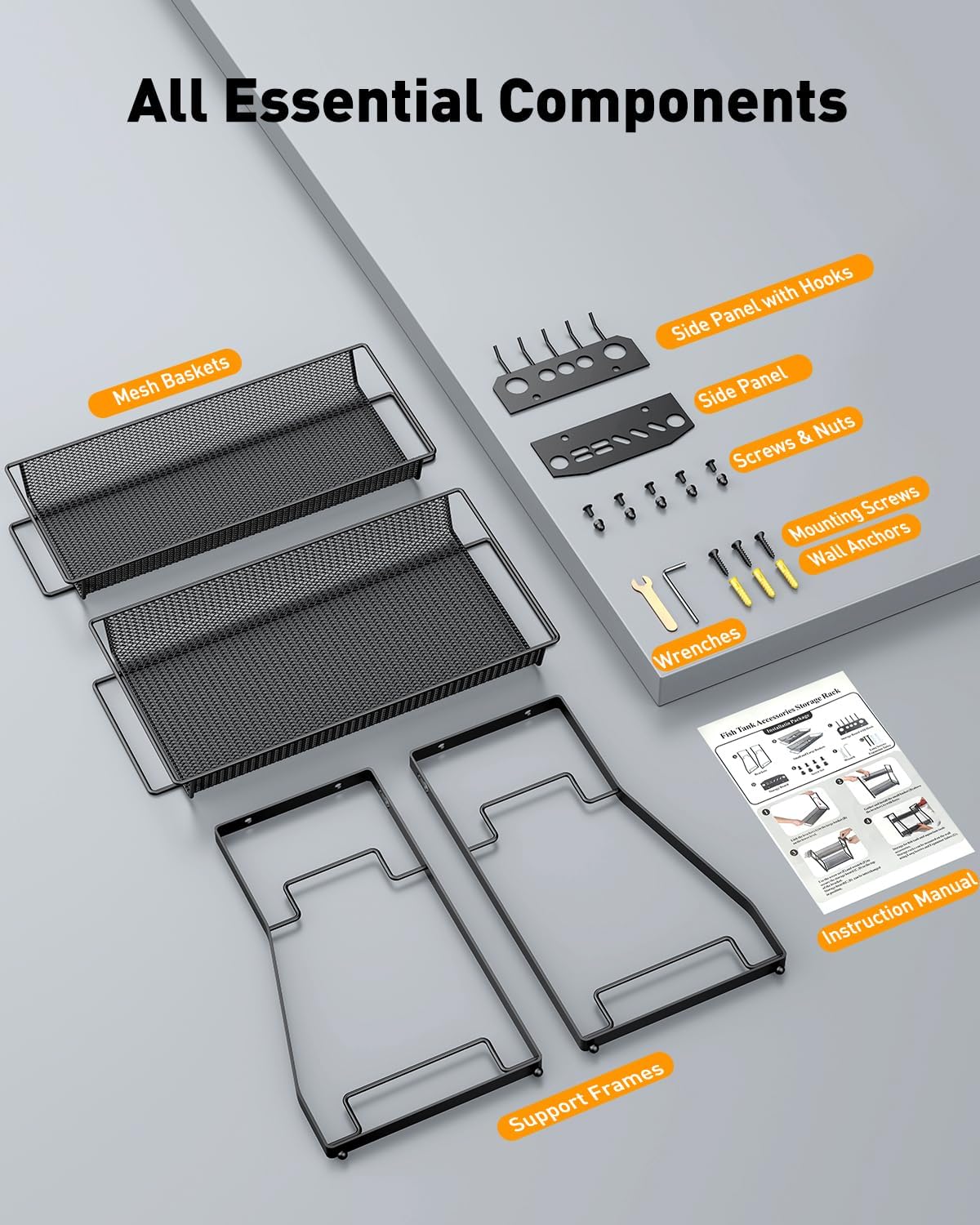 - Ventilated Mesh Baskets: Smart mesh design provides 360° ventilation, allowing your aquarium cleaning tools like magnetic brushes and sponges to air-dry completely. Spacious enough to store multiple fish food containers and medicine bottles