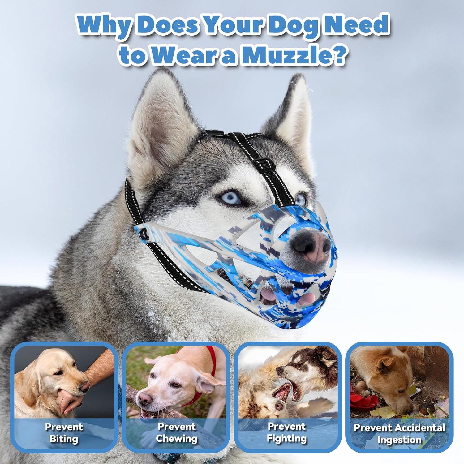 Dog Muzzle for Large Dogs, Medium and X-Large Aggressive Dog, Breathable Basket Muzzles, Suitable for Grooming Trimming Training, Allows Panting Drinking (Camouflage Blue, S)