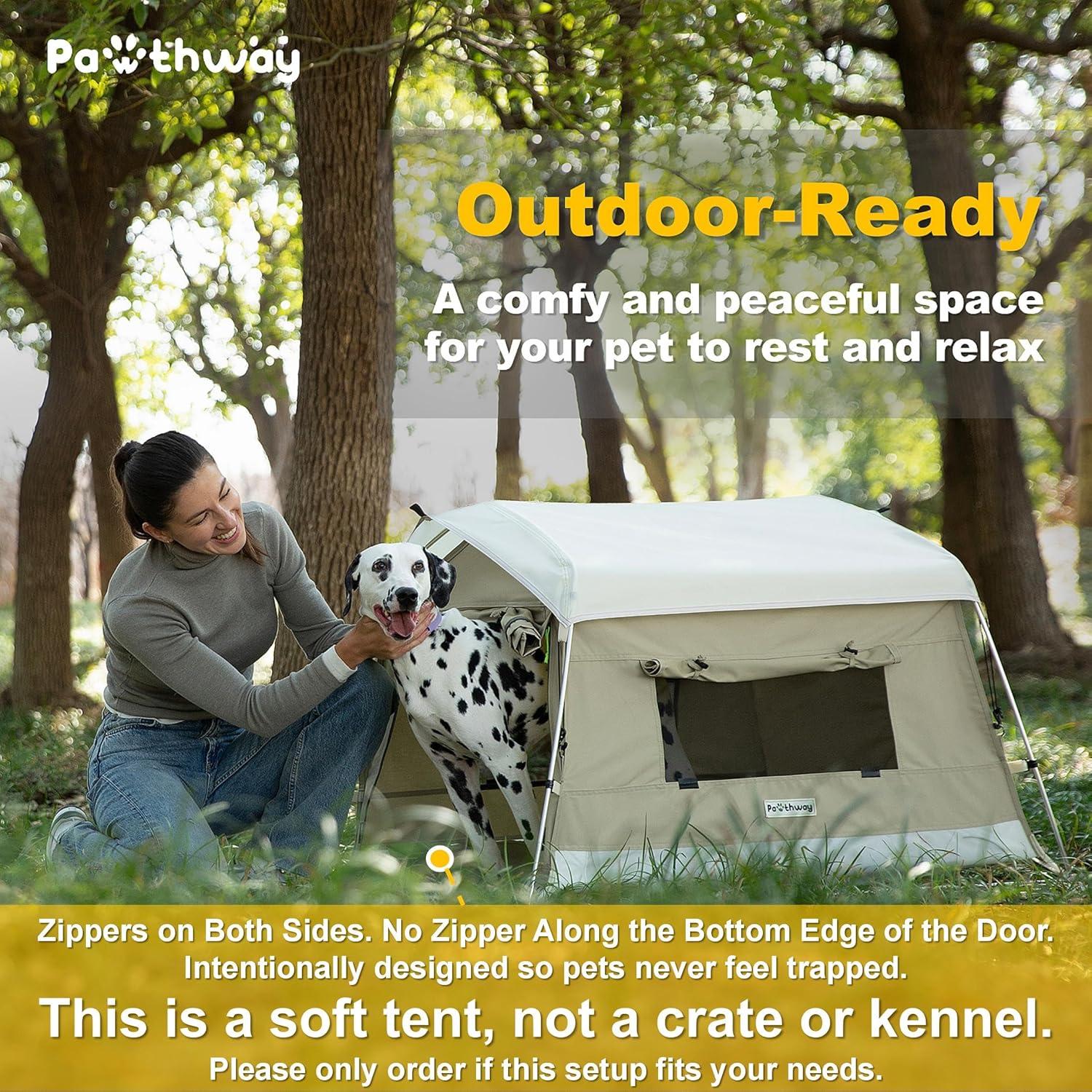 - This Is a Soft Tent, Not a Crate or Kennel: The door zips on both sides, with no zipper along the bottom edge—so your pet can rest or hide without feeling trapped or stressed. This is an intentional design, not a flaw. Do not leave your pet unattended inside the tent, especially in outdoor or unfamiliar settings. Please only order if this setup fits your needs.