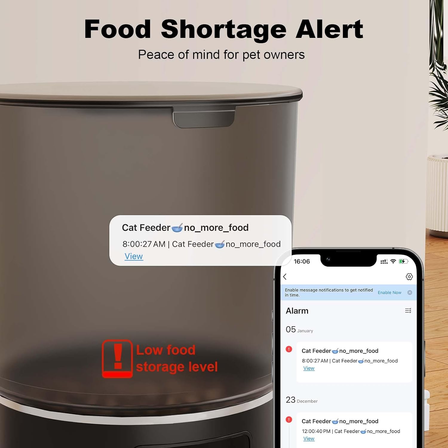 - [Dual Power & Smart Alerts] "USB/battery (battery not included) dual-mode power ensures 24/7 reliable operation. Infrared sensors automatically detect food jams/low levels and send instant app alerts. Compatible with 2-15mm dry kibble (not suitable for wet food).