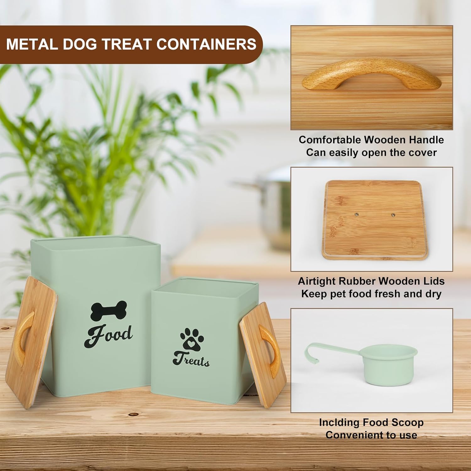 - DURABLE & STURDY MATERIAL - Dog food storage cans are made of metal and will not be easily broken and can be used for a long time. Dog treat container for countertop is coated with a food grade coating to prevent corrosion and rust, making it a great storage option for dog food