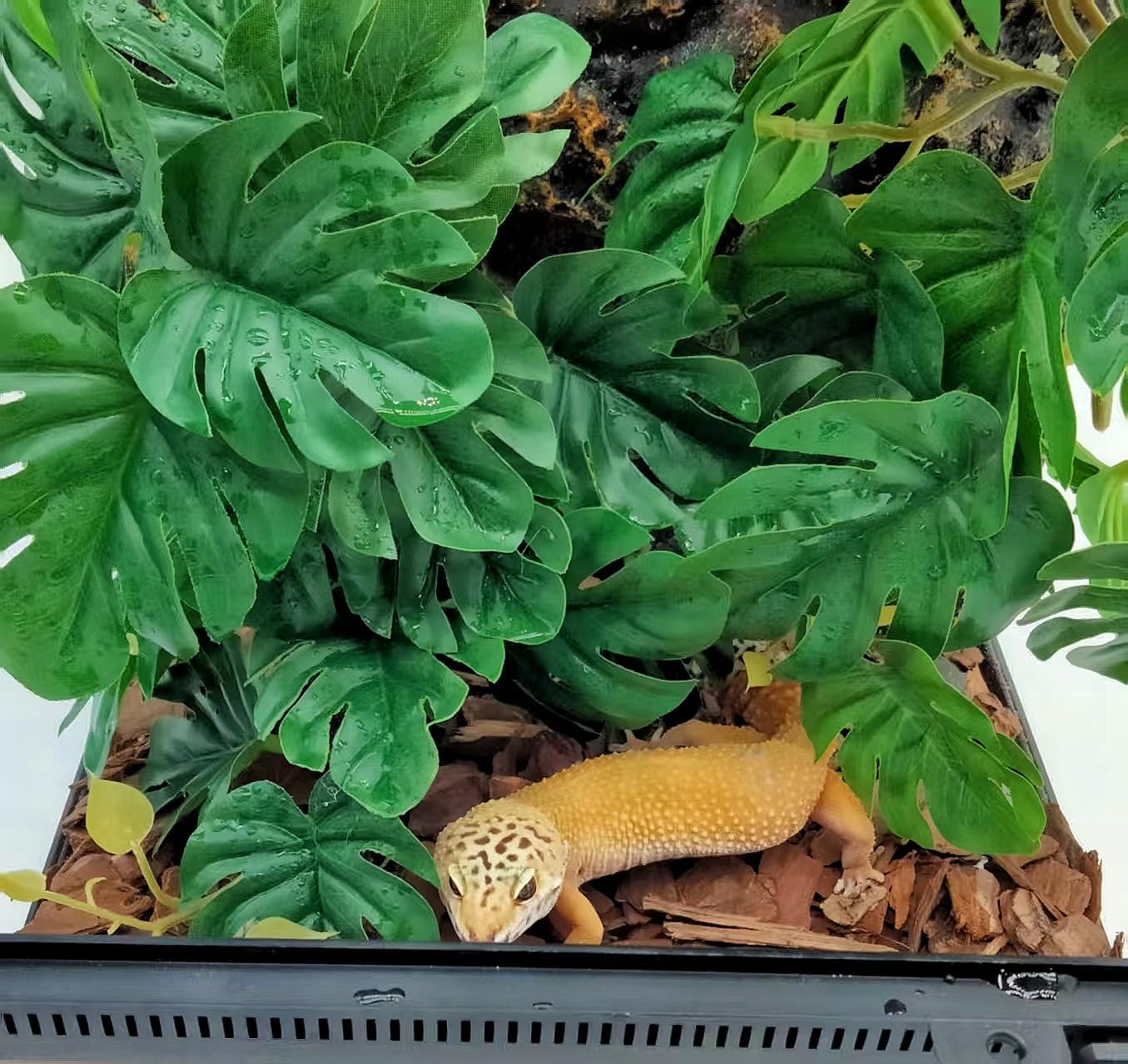 - Natural Habitat Decor:Lots of lifelike plants create a natural habitat for reptiles and amphibians, promoting a safe and relaxed environment while optimizing space utilization. The lush leaves not only serve as decorative landscaping but also provide hiding spots and climbing opportunities.
