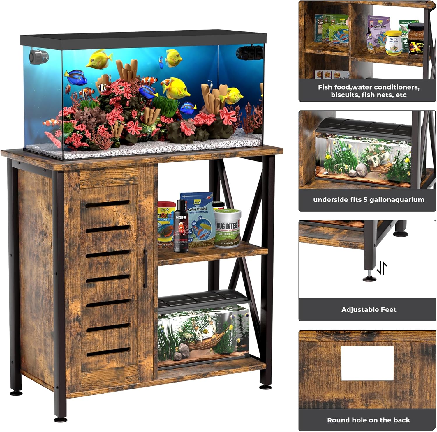 20-29 Gallon Fish Tank Stand, Aquarium Stand with Cabinet Accessories Storage, Heavy Duty Metal Frame, 31.49" L*15.74" W Tabletop, 330LBS Capacity, Rustic Brown PG07YGN