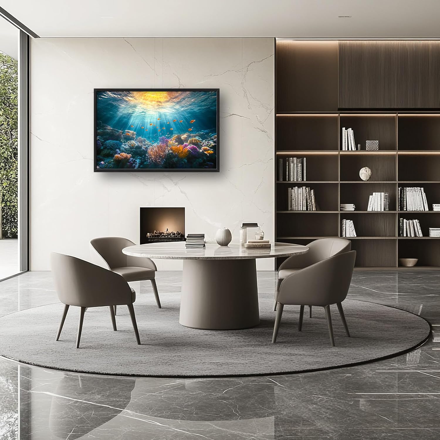 - 【Unique Design】A vibrant coral reef with colorful fish swimming around, sunlight filtering through the water creating beautiful light rays.