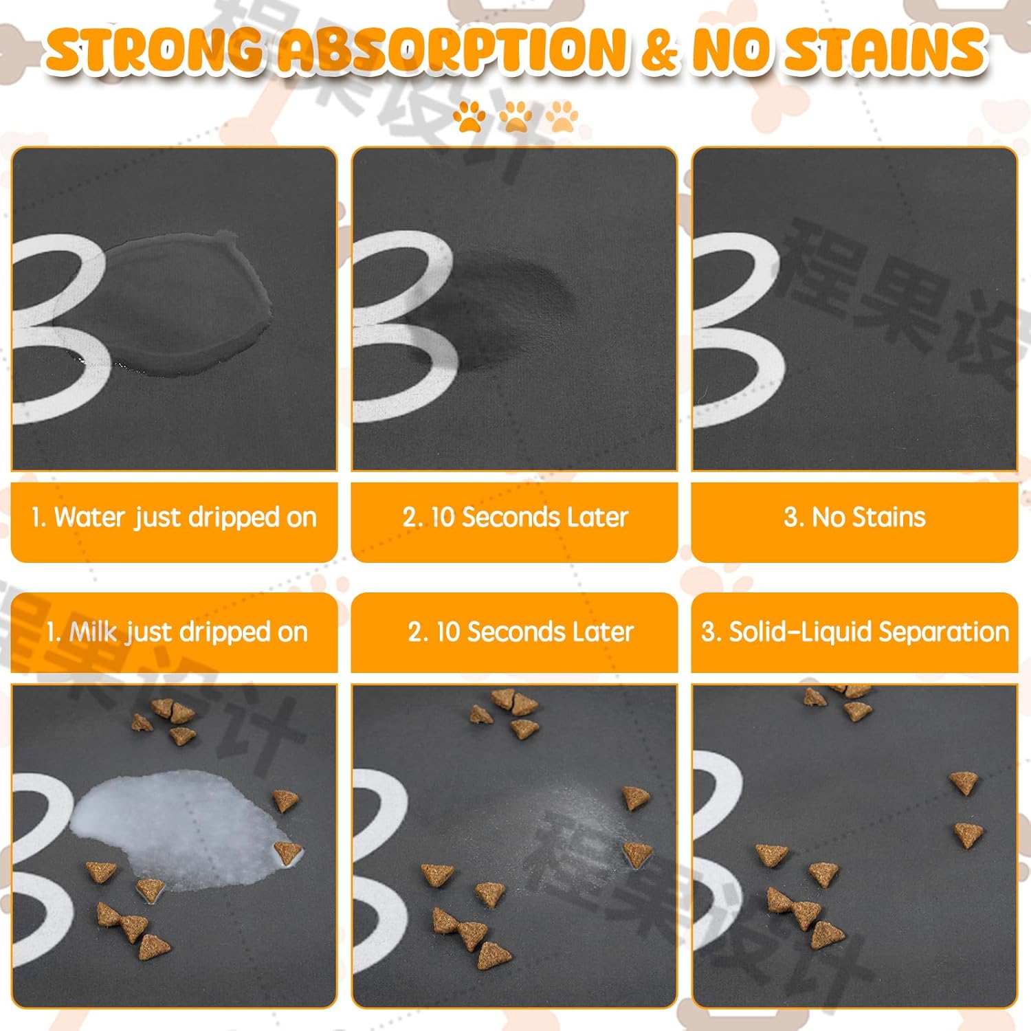 Dog Food Mat, 39.4"x31.5" Largest Absorbent Dog Mat for Food and Water, Non Skid Cat Bowl Mat, No Stains Quick Dry for Pet Water Dispenser Pet Supplies for Messy Drinkers