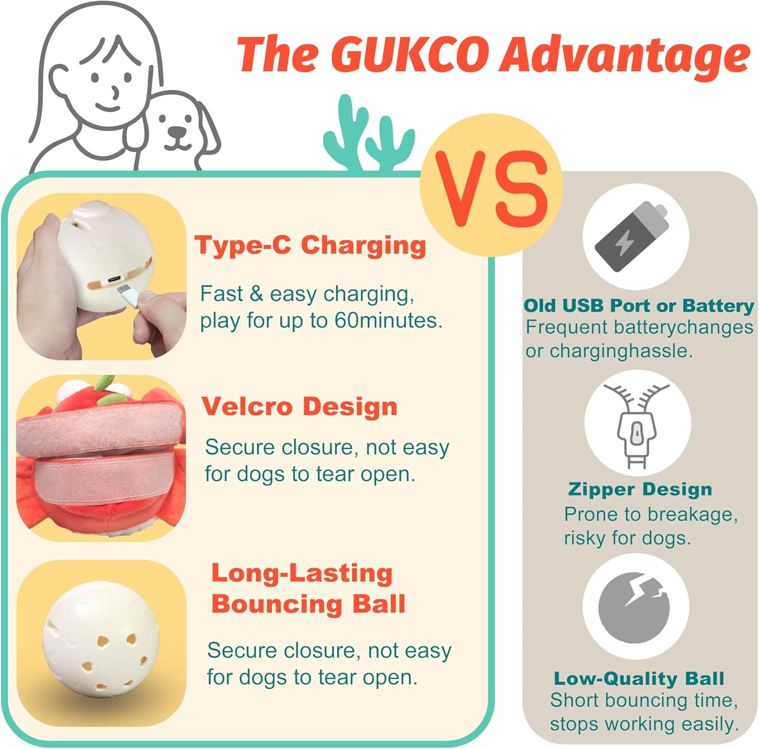 - Rechargeable Interactive Dog Toys: Built-in rechargeable battery eliminates the need for frequent battery replacements, making these squeaky dog toys a more sustainable choice. The plush chew dog toys provide hours of playtime on a single charge, offering a reliable self-play option to keep your dog active and entertained.