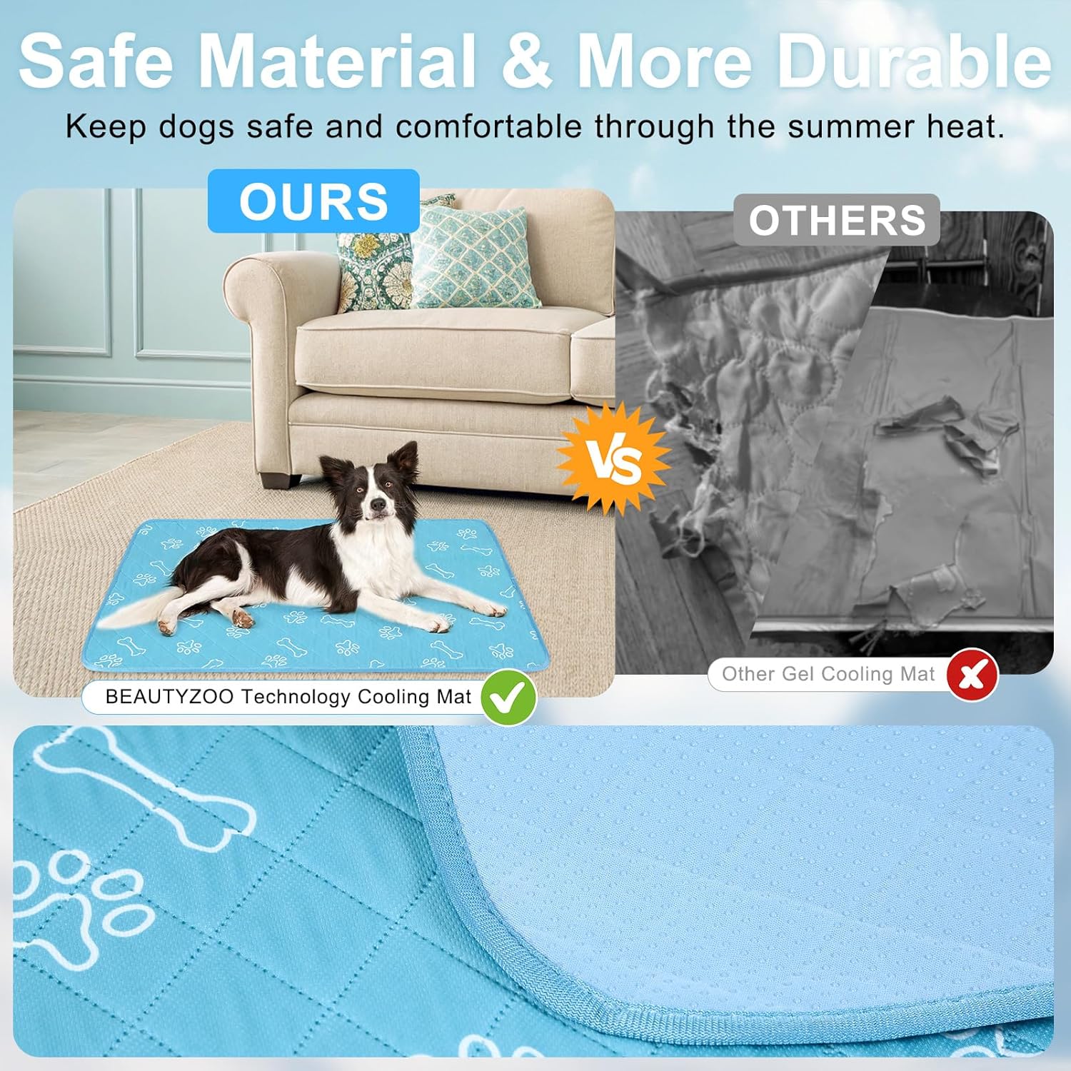 BEAUTYZOO Upgraded Dog Self Cooling Mat Ice Silk Chill Pads for Small Medium Large Dogs Q-MAX>0.43- Summer Reusable Pet Training Pad - Absorbent Non-Slip Cool Mat for Kennels, Crates, Beds, 22" x 28"