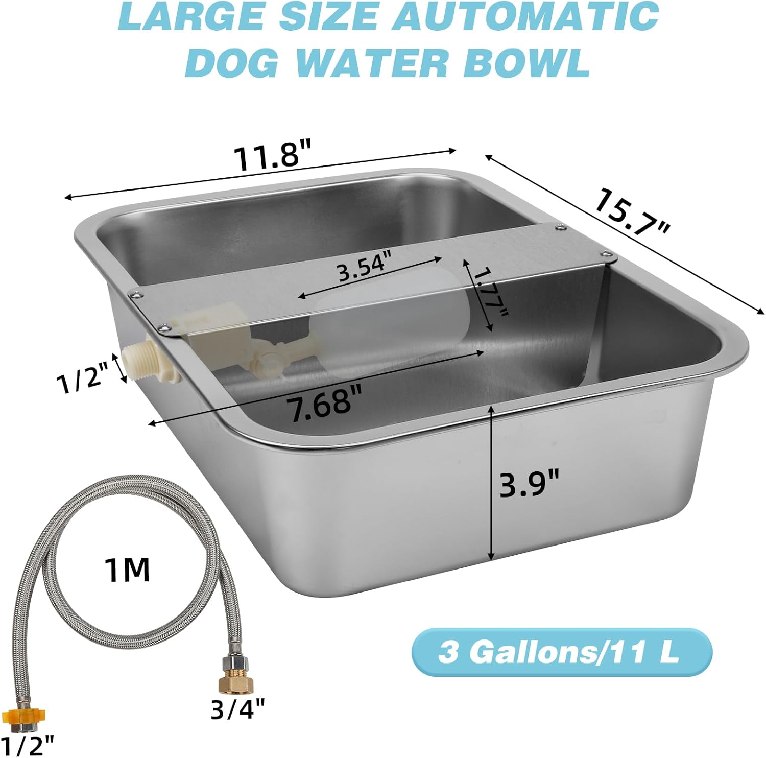 3 Gallon Automatic Dog Water Dispenser, Large Dog Water Bowl Dispenser for Outdoor, Stainless Steel Pet Bowl for Waterer Auto Fill Pet Waterer for Livestock Dogs Cats Chicken Fit 3/4'' GHT Faucet