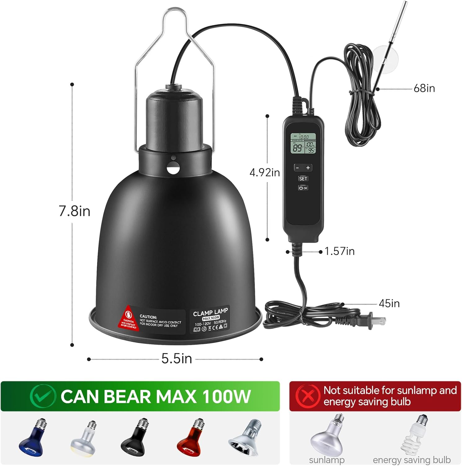 - Special Feature : Dimming Thermostat, Energy Efficient, Reptile Light Fixture with Timer