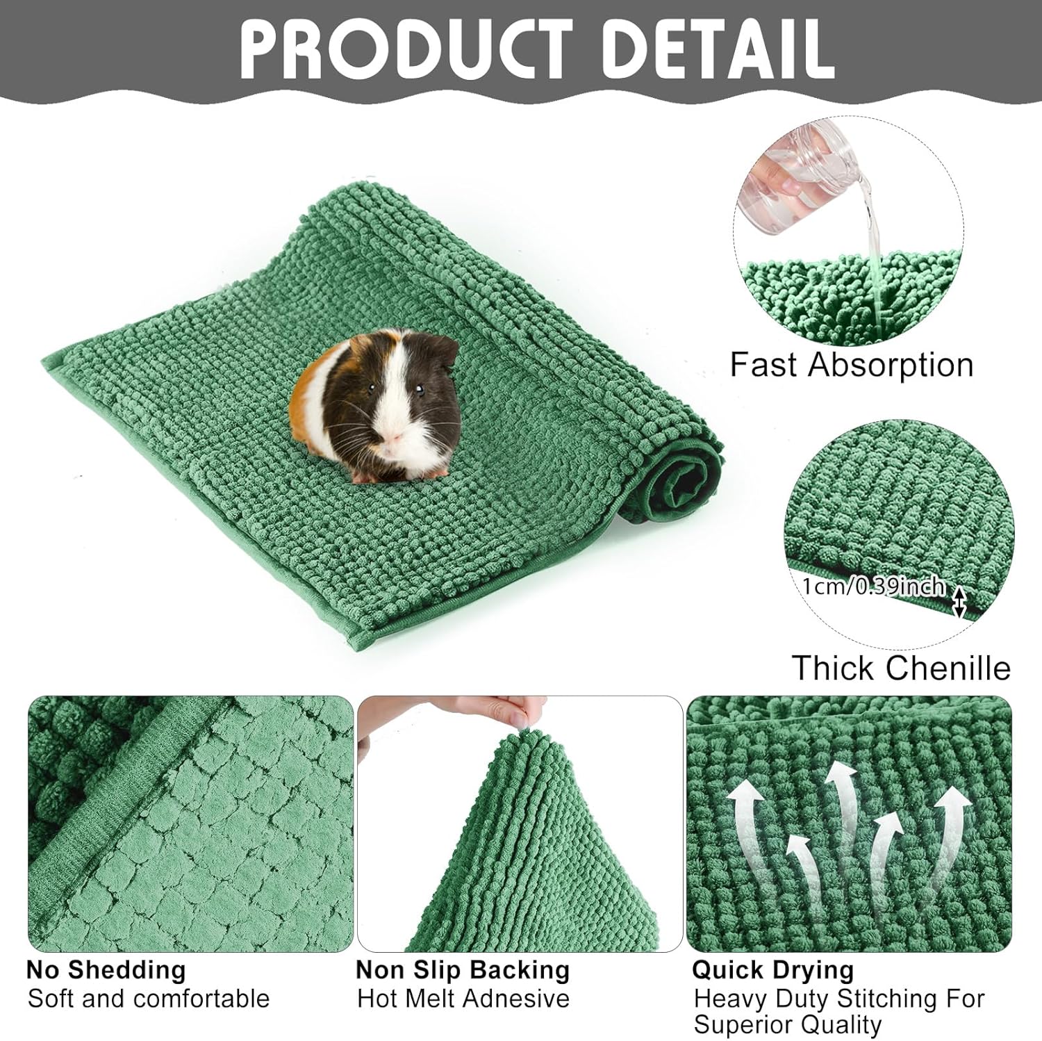 - Absorbent Material: our guinea pig pee pads washable are made of microfiber chenille material, with good density and instant water absorption, which can automatically absorb the water carried by the guinea pig and keep your small pet clean, dry and comfortable
