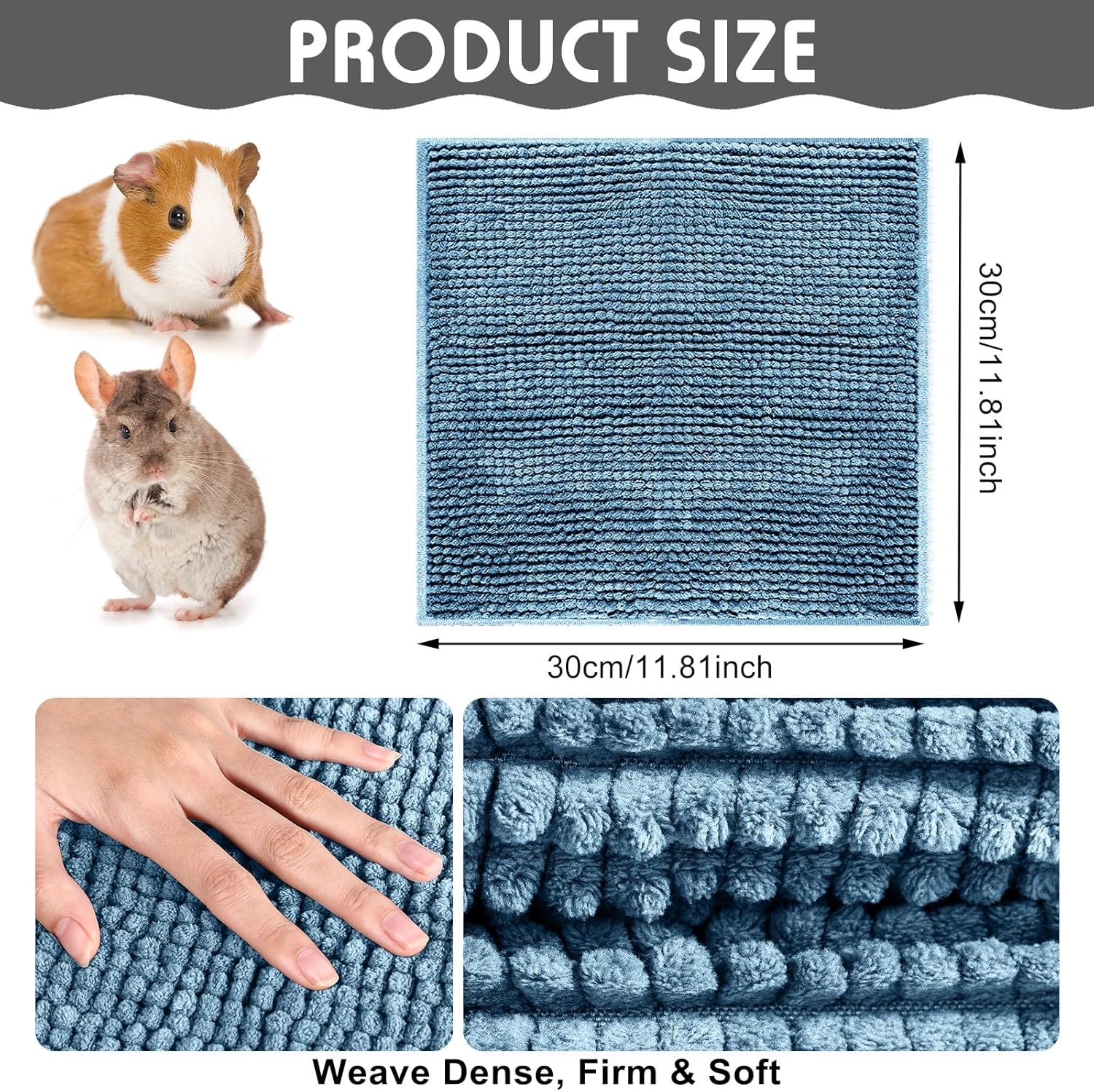 - Proper Size for Small Pets: our guinea pig cage liners come with a size of about 11.8 x 11.8 Inch/ 30 x 30 cm, suitable for small animals, such as guinea pigs, rabbits, chinchillas, squirrels, hamsters, rats, puppies, hedgehog, ferrets, cats and other similar size small pets, and can also serve as dog bowl pads or cat litter pads to keep areas clean and tidy