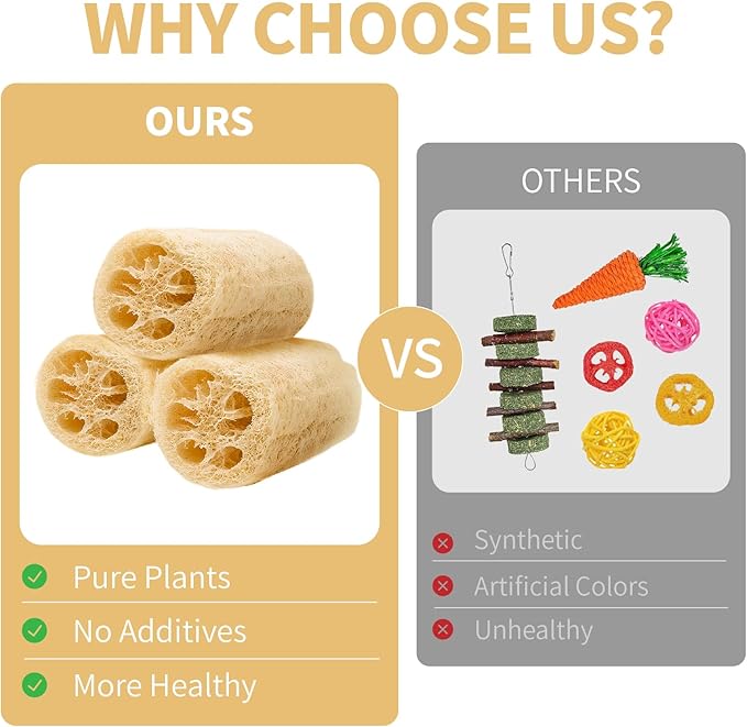 - 【PERFECT GIFT】This loofah toys is not only suitable for bunnies chinchillas,but also for dogs and cats to distract them from chewing on furniture.Perfect as a gift for friends or coworkers who have pets.