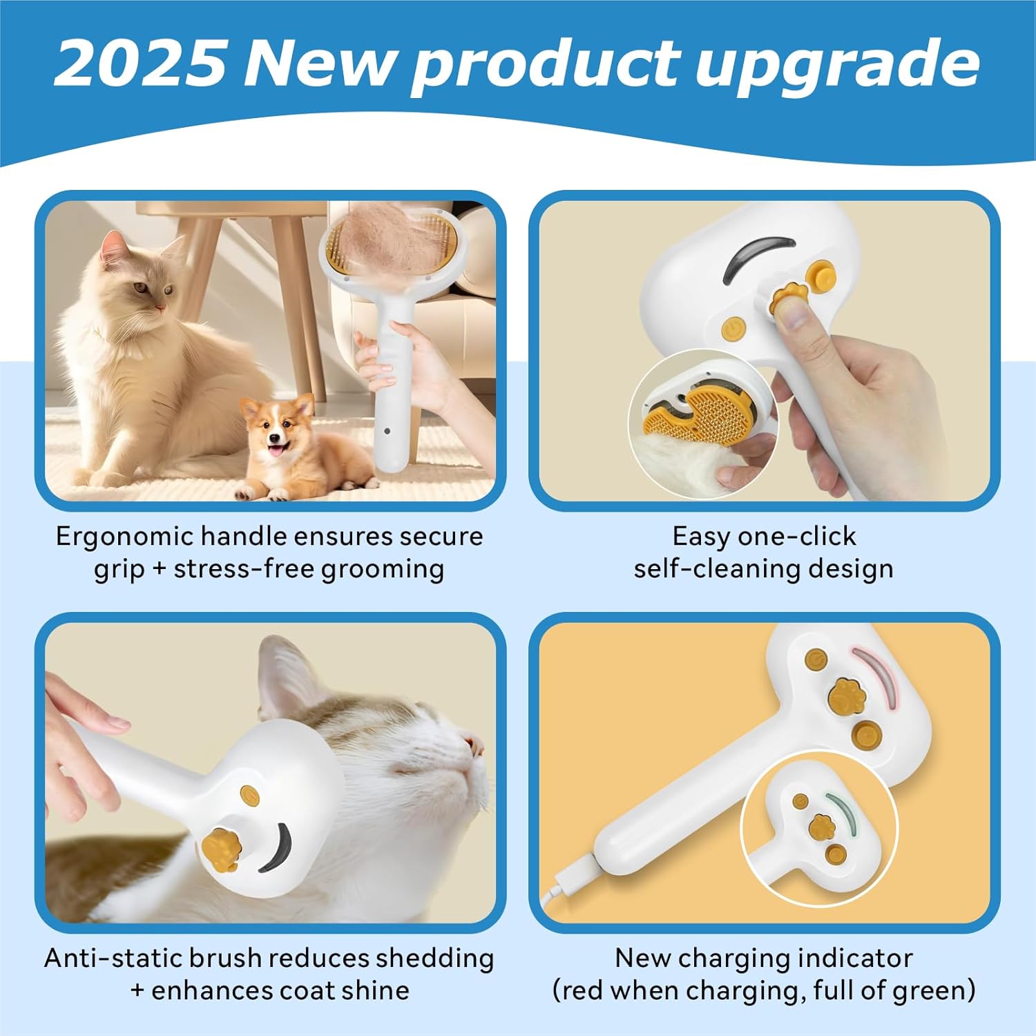 - ✨ 【4-in-1 Dog & cat grooming System 】Combine steam brush, spray massage, deshedding tool and hair remove self-cleaning, now enhanced with 50ml hypoallergenic leave-in essence (exclusive in this category). The plant-based formula reduces shedding by 63%* while moisturizing skin.