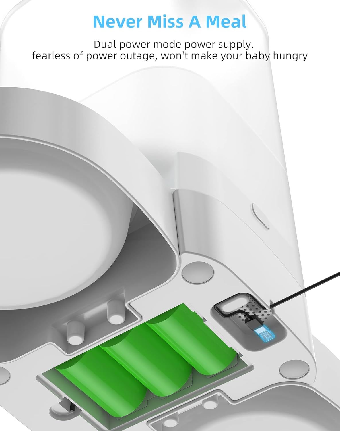 - [Dual Power Supply ] The timed cats feeder can be powered by USB power adapter and 3 alkaline D-size batteries (NOT Included). Once the feeding schedule is set, it is repeated every day. In the event of a power outage, the automatic feeder will automatically switch to battery power. For safety reasons, it is recommended to use Battery power sources. Battery alone can supply power for 200 days.No need to worry about your pet going hungry while you are away.