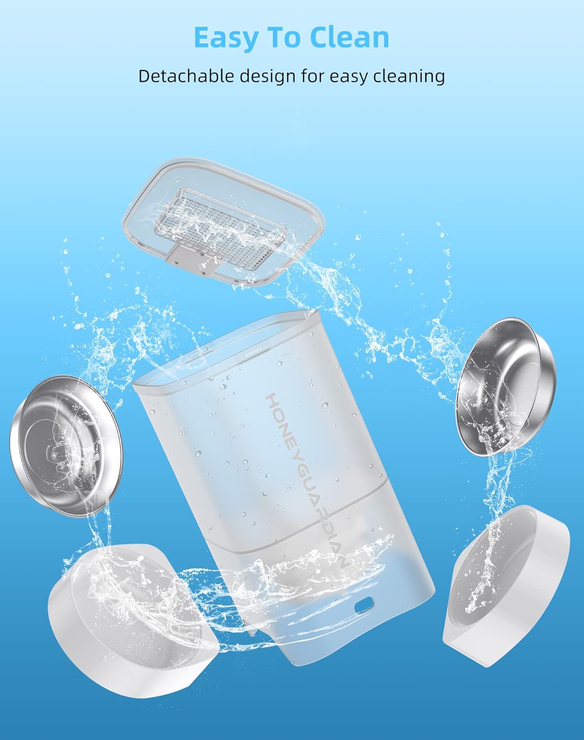 - [Easy to operate, easy to disassemble and wash] The automatic feeder is easy to set up and you can set up a feeding schedule in minutes. The top cover, clear food bucket and stainless steel bowl can be removed from the main unit and cleaned with water. In addition to the main unit, other parts of the cat feeder should be cleaned regularly to provide a clean and healthy feeding environment for your pet.