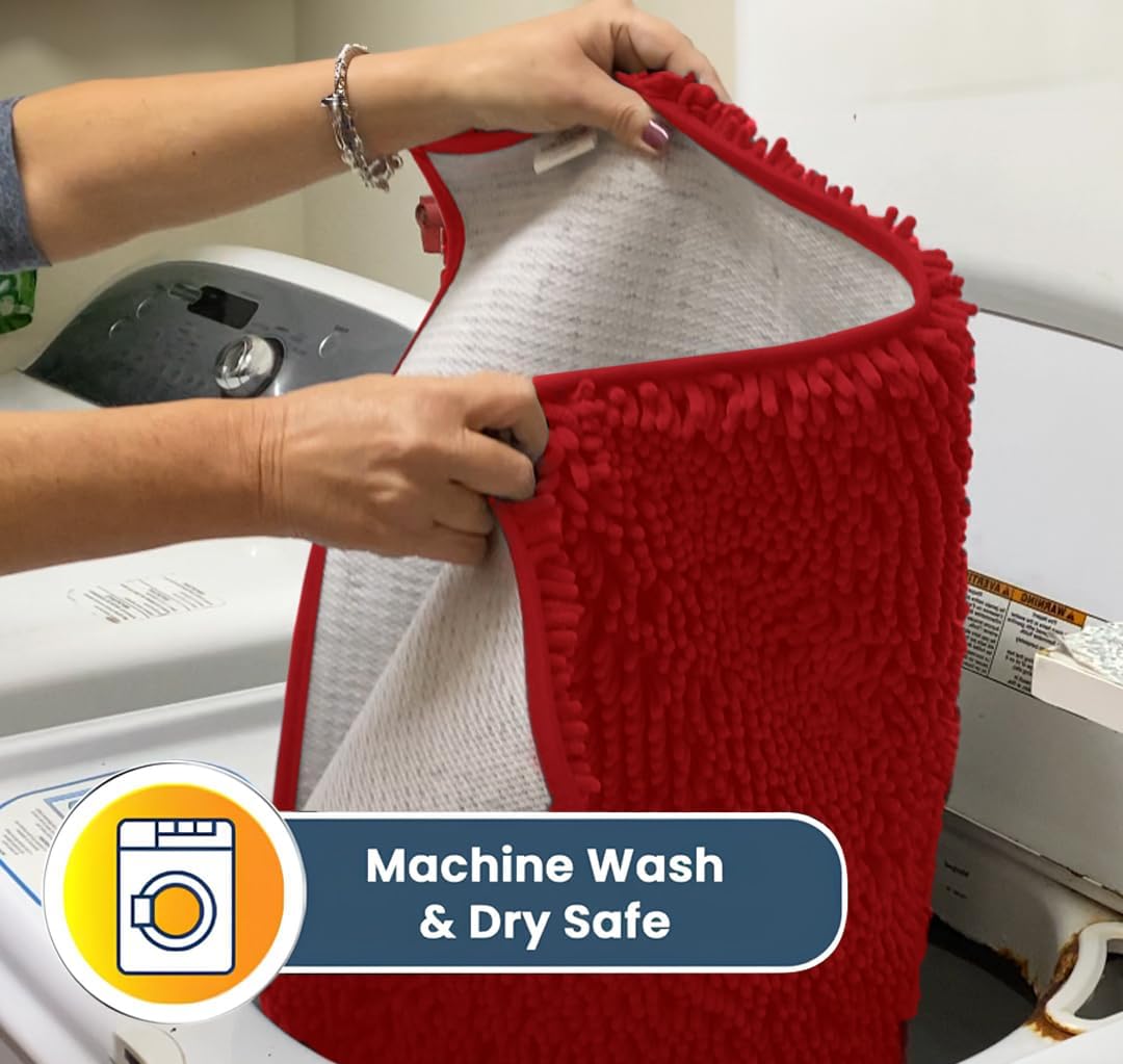 Muddy Mat® AS-SEEN-ON-TV Highly Absorbent Microfiber Door Mat and Pet Rug, Non Slip Thick Washable Area and Bath Mat Soft Chenille for Kitchen Bathroom Bedroom Indoor and Outdoor - Red 3ft x 8ft