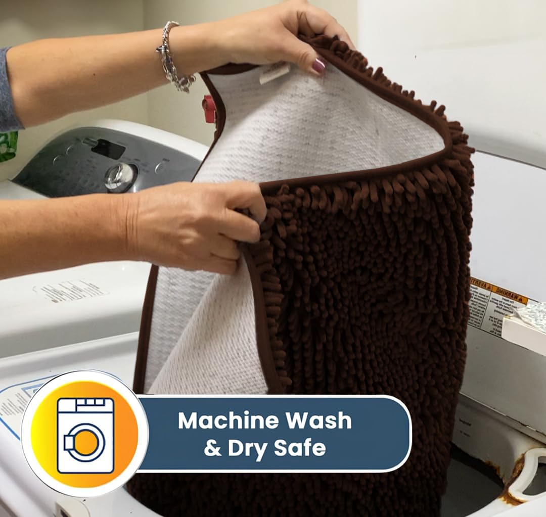 Muddy Mat® AS-SEEN-ON-TV Highly Absorbent Microfiber Door Mat and Pet Rug, Non Slip Thick Washable Area and Bath Mat Soft Chenille for Kitchen Bedroom Indoor and Outdoor - Chocolate Brown 3ft x 8ft