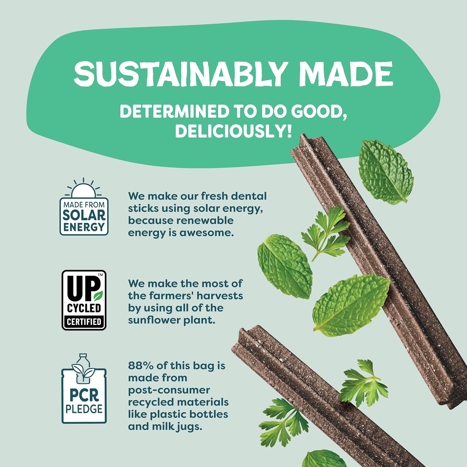 - Proudly Made in the USA: All of our creative, delicious pet treats are made here in the USA by nutritionists using the finest ingredients and sustainable practices, such as wind and solar powered manufacturing and bags with 88% PCR material. Plus, there’s a health benefit for every flavor – because after all, a healthy pet is a happy pet!