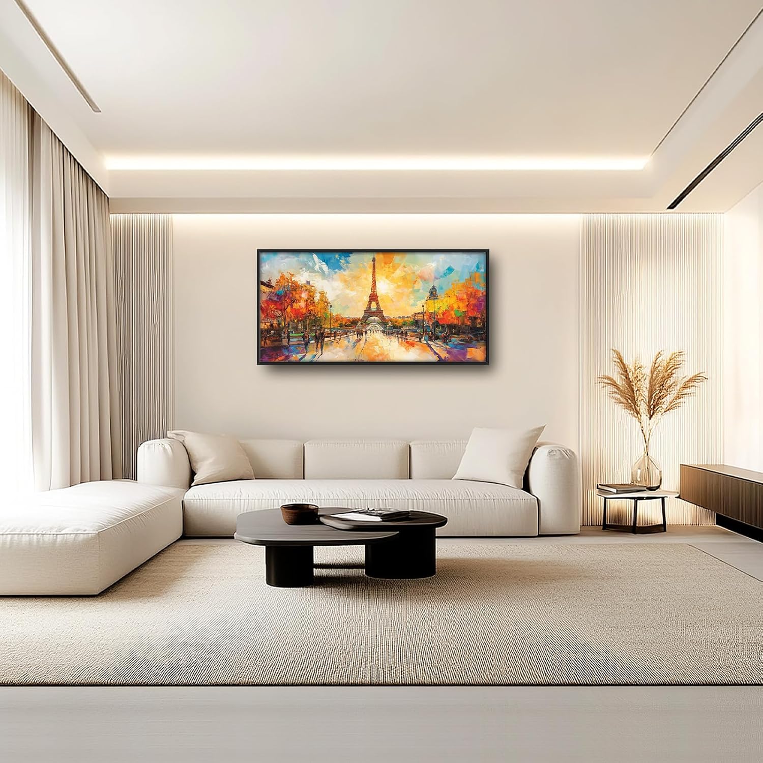 Framed Large Eiffel Tower Wall Art for Living Room, Oversized Paris City Street Landscape Wall Decor, Colorful Sunrise Canvas Painting Modern Artwork for Living Room Bedroom Office 60"x30"