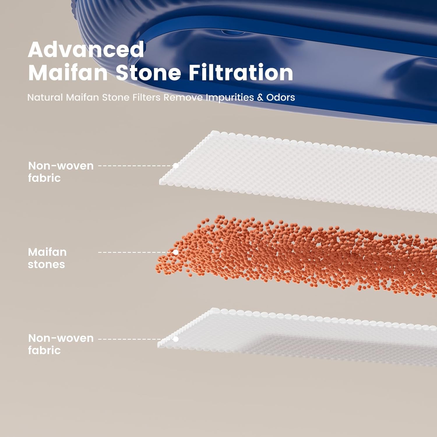 - 3-Layer Maifan Stone Filtration — Gardner pet filtered dog water bowl, non-woven fabric + natural maifan stone + non-woven fabric trap hair, dust, and impurities. Includes 2 replacement filters(and thanks so much for our dear customer message. our filter products will be available for sale in as soon as two months).