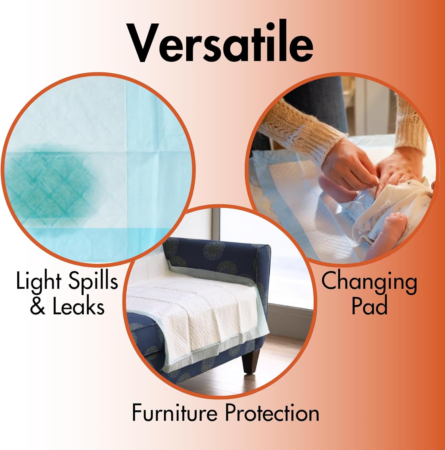 - Designed for light absorbency—perfect for light leaks , ideal for protection of beds, chairs, and furniture for adults, pets, and babies