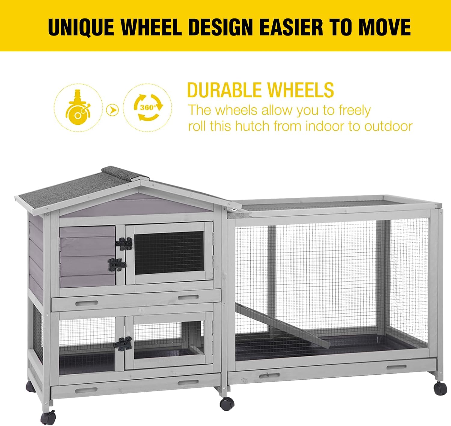 - 【Easy Movement】6 wheels make it easy to move the rabbit hutch wherever you like.