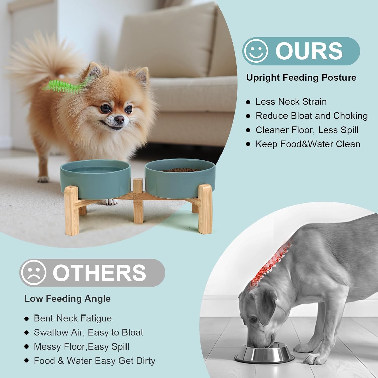 - Stable, Tip‑Resistant Design – A solid bamboo frame with Chew‑Resistant Heavyweight Ceramic, wide stance, and slip‑proof silicone pads join forces to create raised dog bowls that STAY IN PLACE on tile, wood, or laminate. Fewer spills mean cleaner floors and no accidental gouges or scratches or noisy