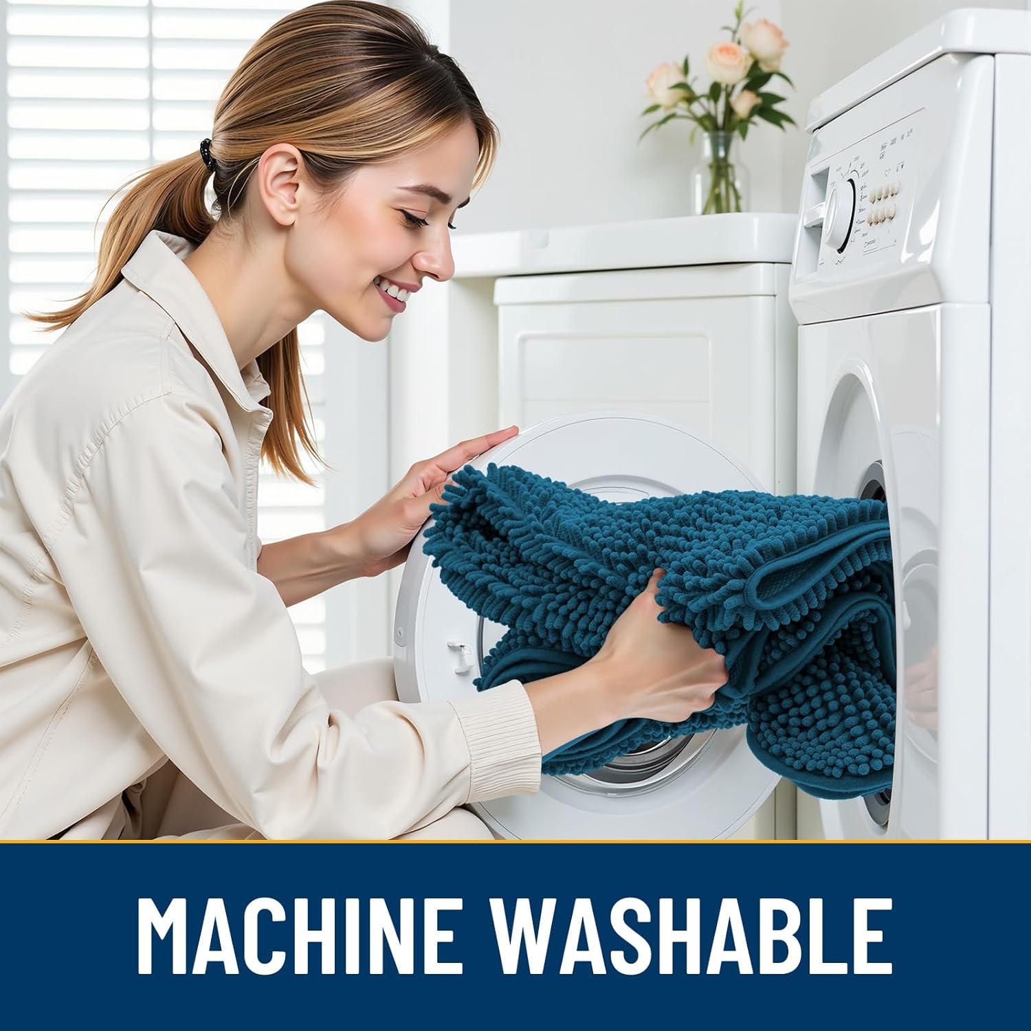 Smiry Dog Door Mat for Muddy Paws 70x24, Absorbs Moisture and Dirt Doormat, Non-Slip Washable Quick Dry Chenille Front Door Mat Indoor Entrance, Entryway Carpet for Inside Floor, Atlantic Blue