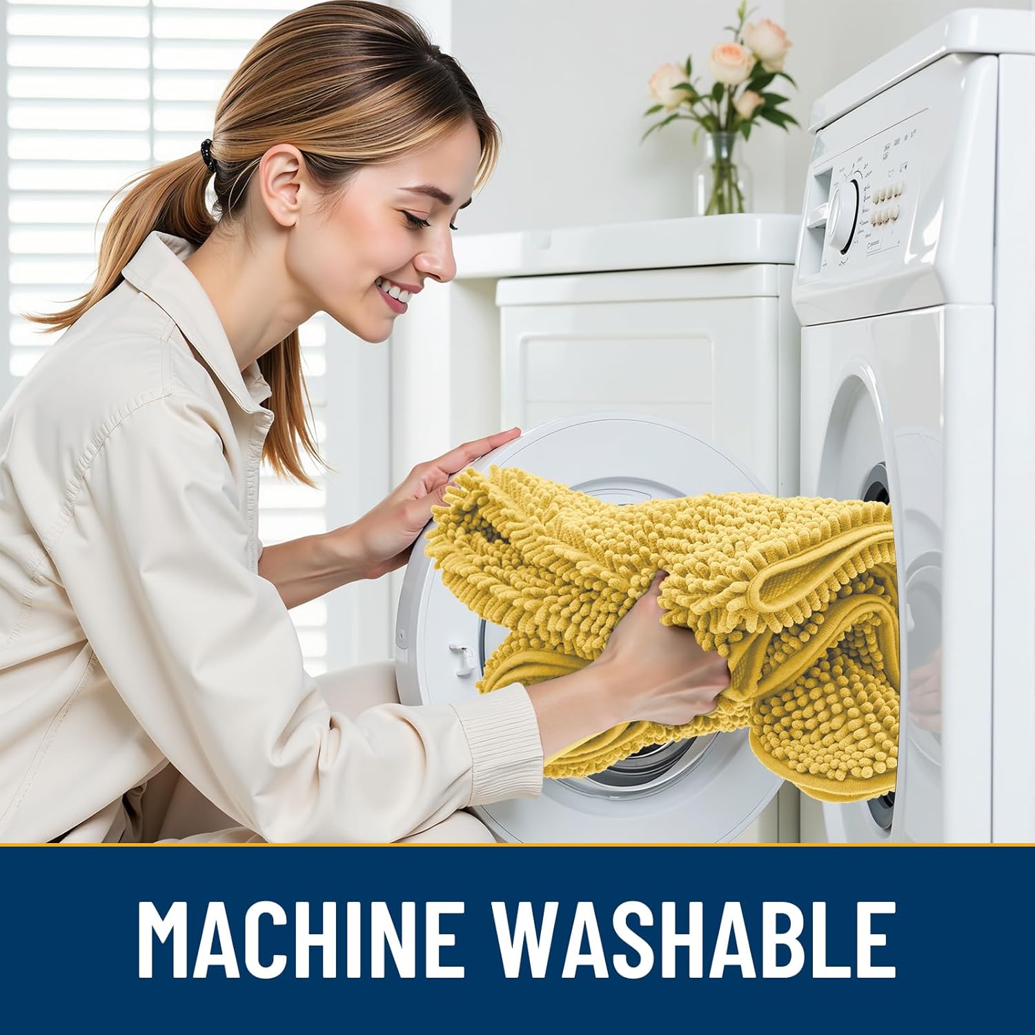 Smiry Dog Door Mat for Muddy Paws 24x16, Absorbs Moisture and Dirt Doormat, Non-Slip Washable Quick Dry Chenille Front Door Mat Indoor Entrance, Entryway Carpet for Inside Floor, Yellow
