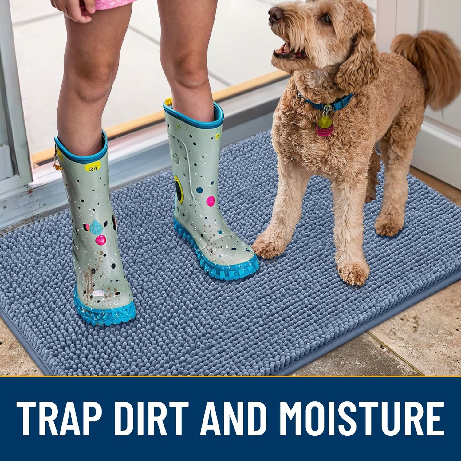 Smiry Dog Door Mat for Muddy Paws 24x16, Absorbs Moisture and Dirt Doormat, Non-Slip Washable Quick Dry Chenille Front Door Mat Indoor Entrance, Entryway Carpet for Inside Floor, Airy Blue
