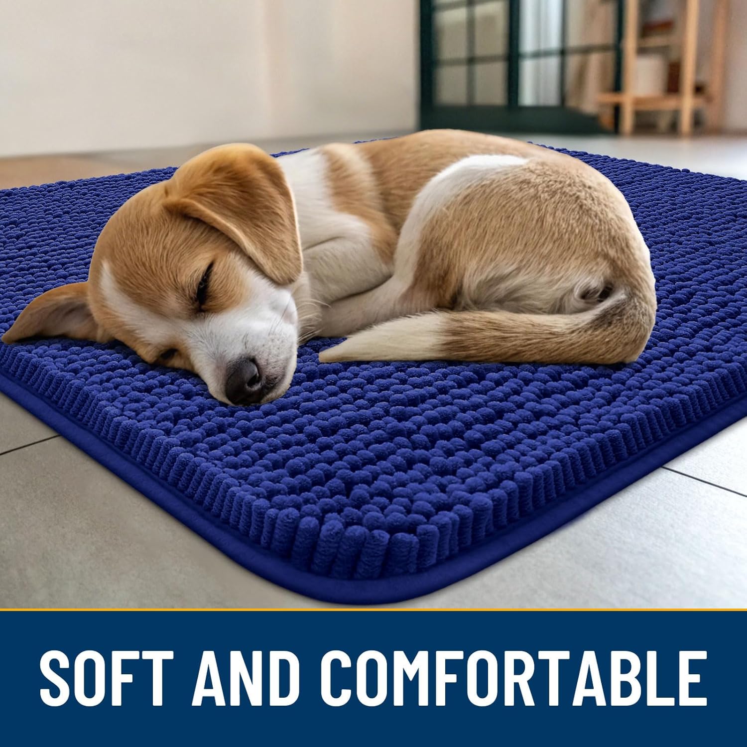 Smiry Dog Door Mat for Muddy Paws 59x35, Absorbs Moisture and Dirt Doormat, Non-Slip Washable Quick Dry Chenille Front Door Mat Indoor Entrance, Entryway Carpet for Inside Floor, Navy Blue