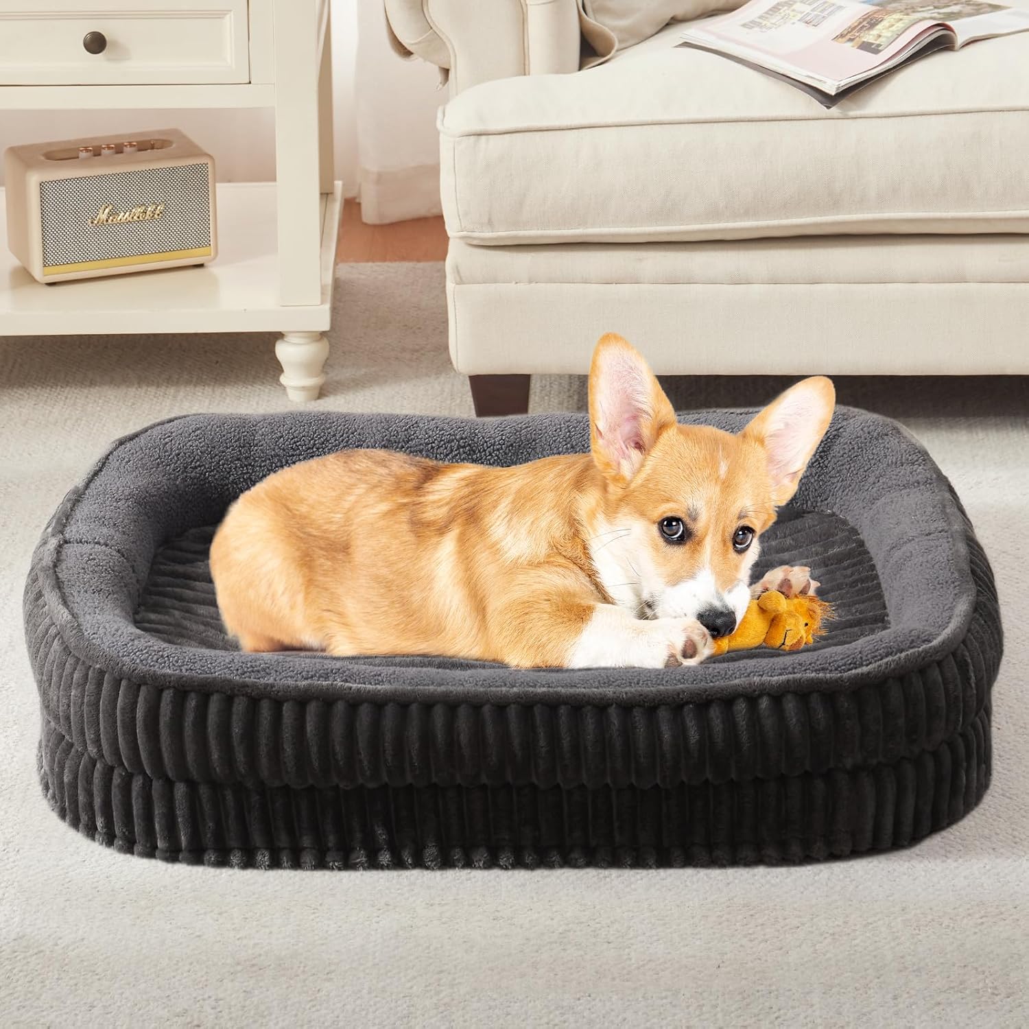 Orthopedic Dog Bed for Medium Dogs Breeds, High Density Egg Crate Foam Dog Sofa Beds,Oval Kennel Bed, Pet Couch Bed with Four Sided Bolster, Removable Washable Cover& Non-Slip Bottom