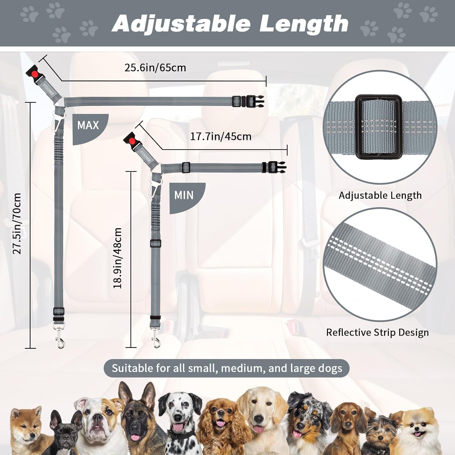 - Multifunction & Easy to Use: For effective restraint and protection during travel. The dog seatbelt can be hung on the seat back rest or inserted separately in the seat belt buckle, dog car seat cover. Equipped with elastic rope, can be used as a dog leash, so that you hold the dog partner safe walk