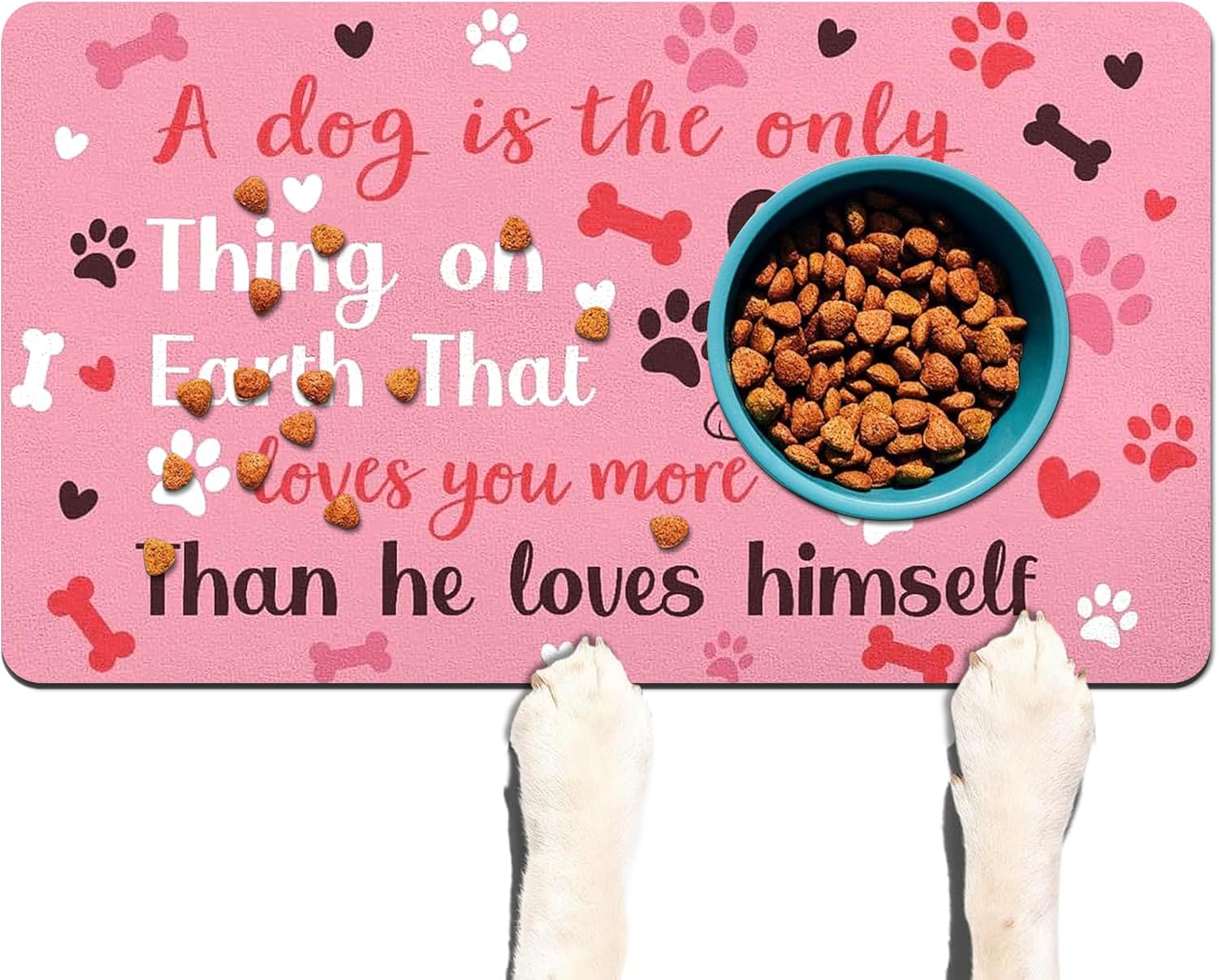 • Waterproof & Easy Clean Dog Food Mats for Floors Waterproof - Unlike regular mats, our heavy-duty dog food mat features a 100% waterproof layer that prevents liquids from seeping through the floor. Simply wipe clean your dog bowl mat after meals - no staining or odors! Works great as both a dog food mat and cat food mat.