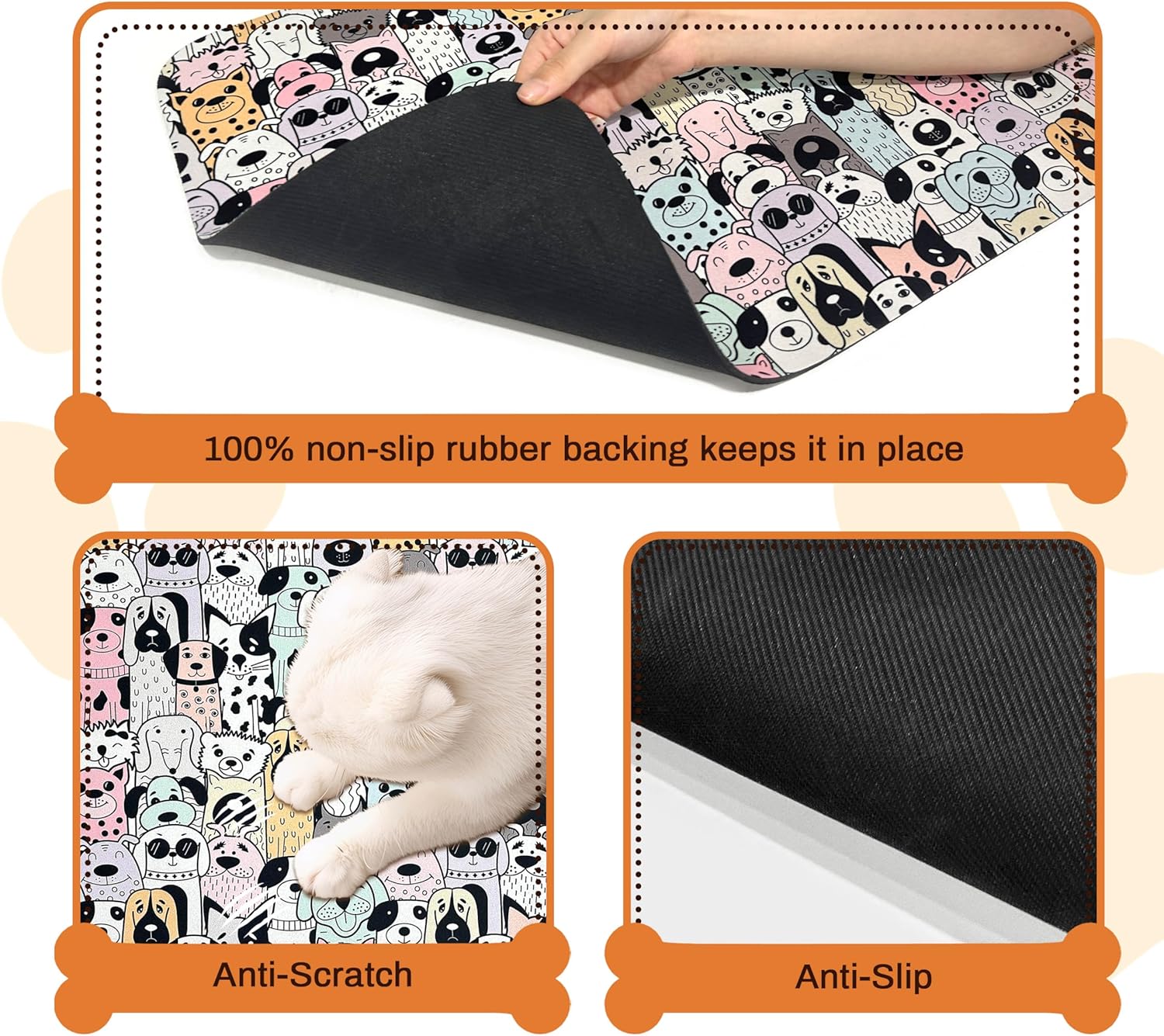 • Super Safe Non-Slip Rubber Mat for Dog Bowls - Our dog feeding mat features a special non-slip rubber backing that keeps the dog bowl mat firmly in place, even with energetic pets! The pet food mat won't bunch or slide during use. Perfect as pet mats for food and water in kitchens or feeding areas.